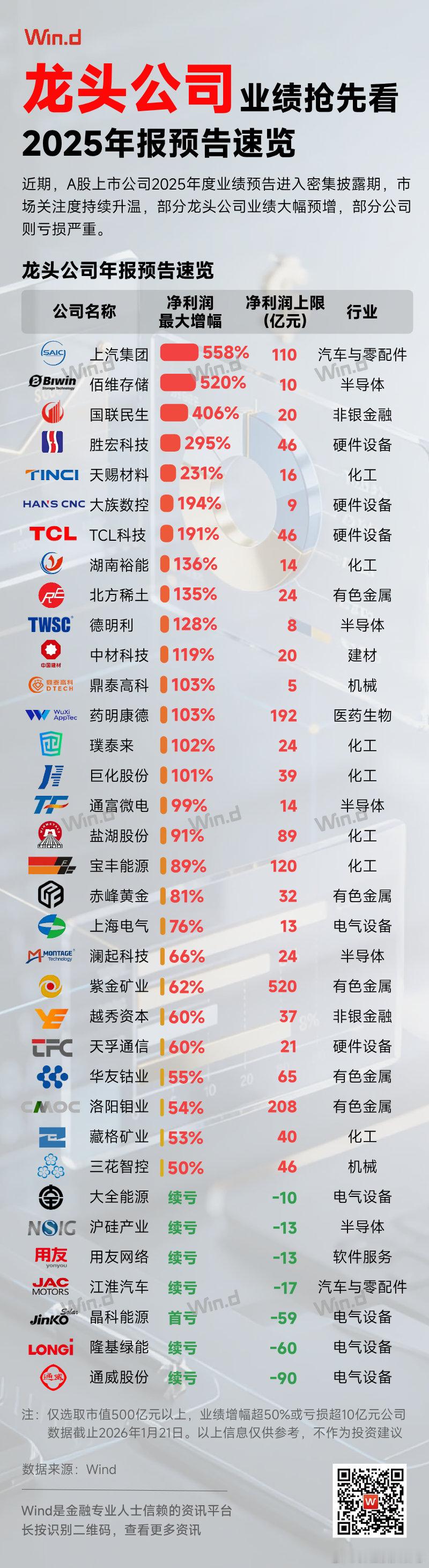 价值投资日志 【万得图说】龙头公司2025年报预告速览近期,A股上市公司2025年度业绩预告进入密集披露期,市场关注度持续升温,部分龙头公司业绩大幅预增,部分公司则亏损严重。 池州·安徽卫生健康职业学院