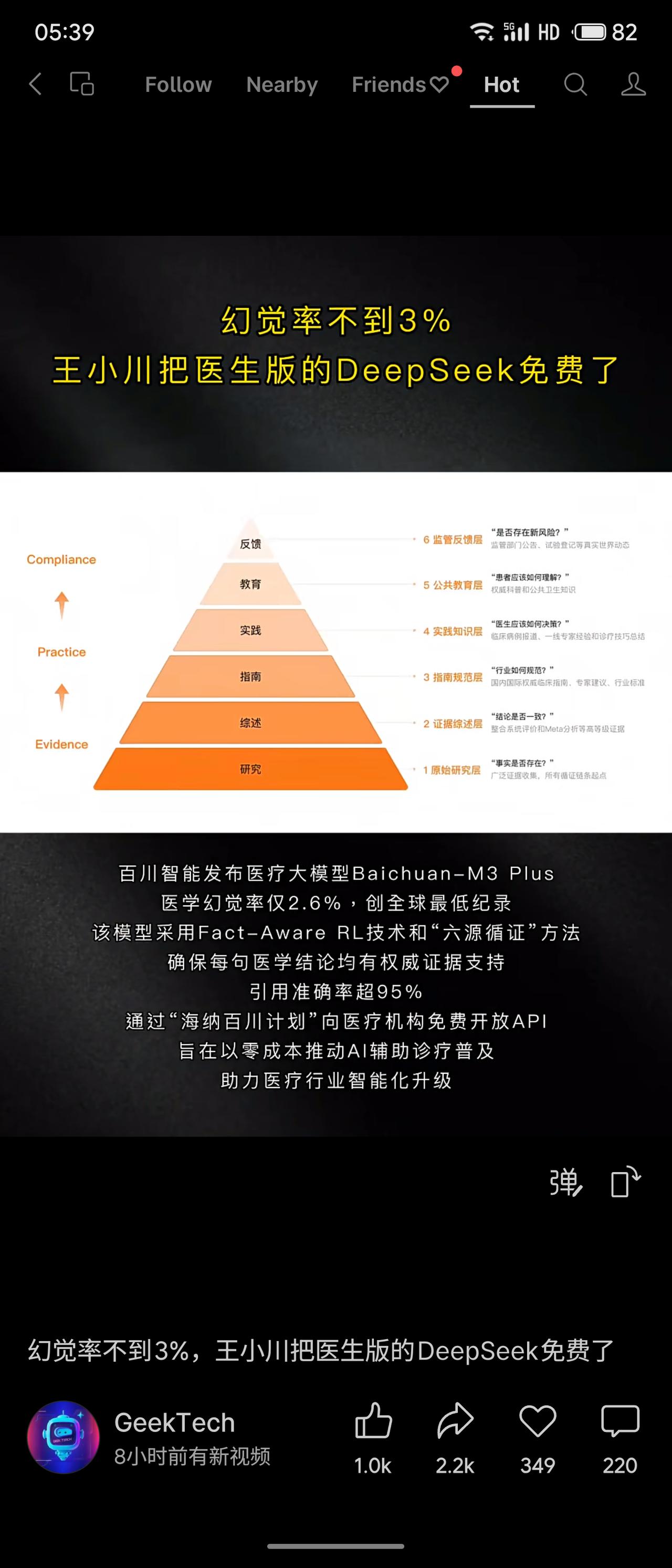 王小川的百川智能发布了医疗大模型Baichuan-M3 Plus。该模型采用“六源循证”方法,医学幻觉率低至2.6%,引用准确率超95%,并通过免费开放API推动AI辅助诊疗的普及。