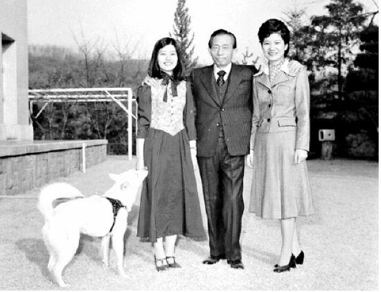 朴槿惠与家人的照片,她集中了爸妈的优点来长。相较之下,她妹妹没她高没她漂亮也没她能力强。