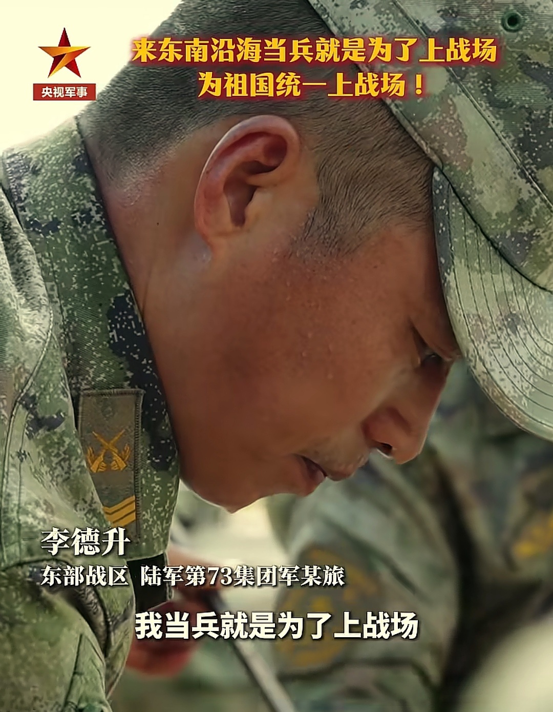 东部战区陆军第73集团军某旅李德升:来东南沿海当兵就是为了上战场,为祖国统一上战场!我的战场梦做了20年,到今天,我的梦,我们的梦即将实现。