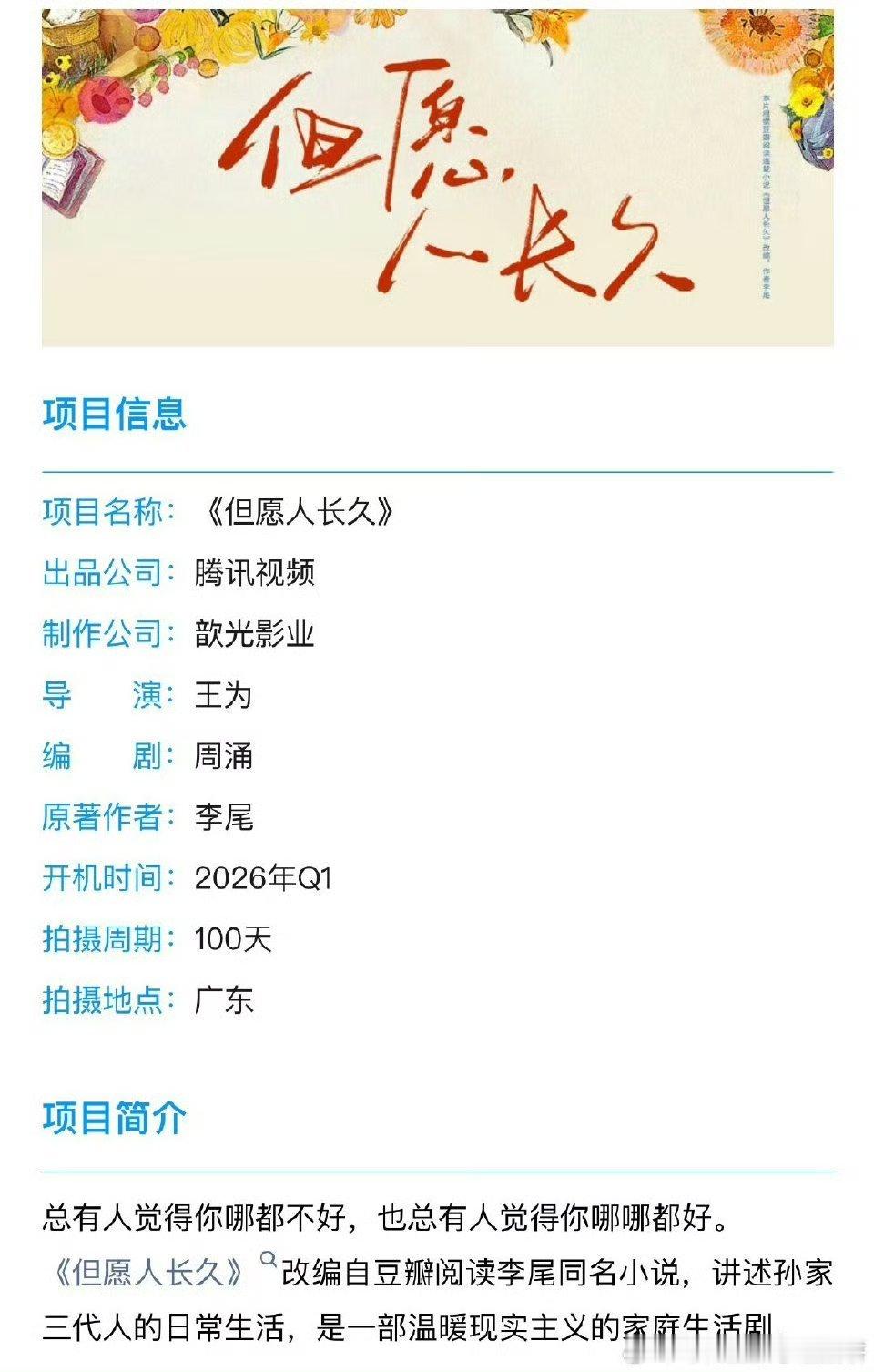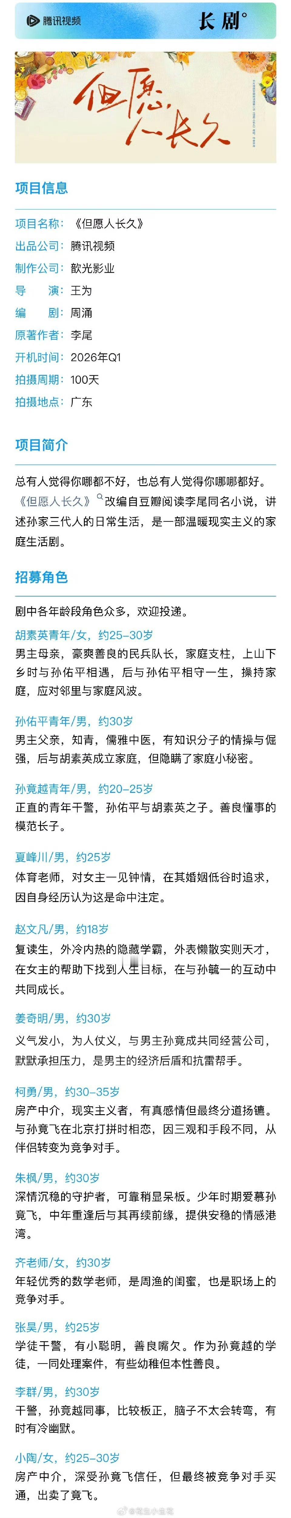 电视剧《但愿人长久》组讯主演:张晚意、沈月,3月开机好期待新鲜的组合