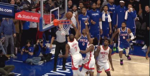 火箭队逃过一劫呀! 在火箭对阵76人比赛第四节的最后一个进攻回合中,马克西带球突破进入内线。 这球很明显的是先打板后被封盖,是一个干扰球。但是裁判却没有看到,最后只给了一个争球。 最终双方进入了加时赛,如果这球正常吹罚的话,火箭队就已经输球了,只能说运气好逃过一劫。 NBA吐槽大会NBA睿闻