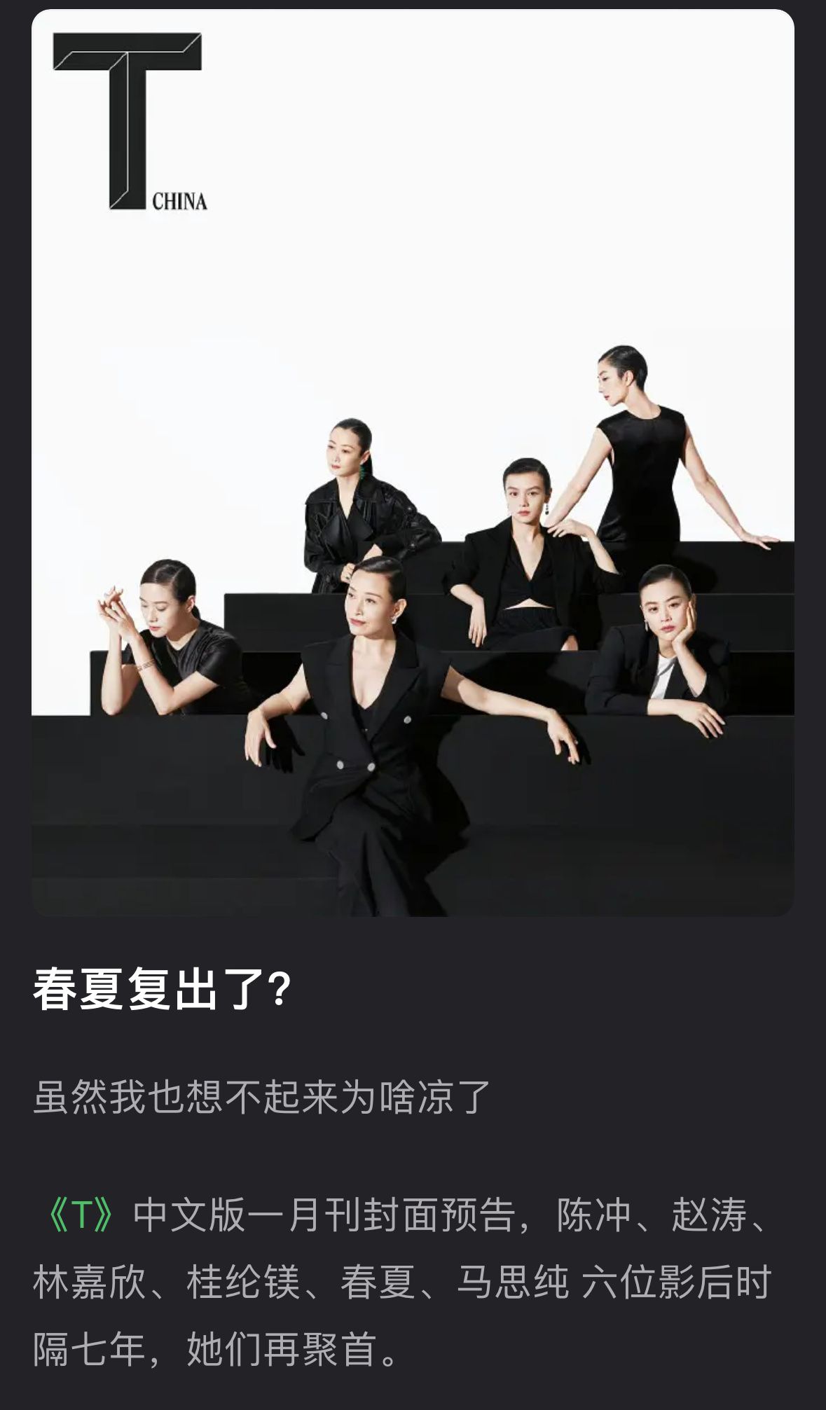 春夏竟然复出了所以网友对糊人宽容度最高她当时那件事多严重啊还能上T杂志封面…