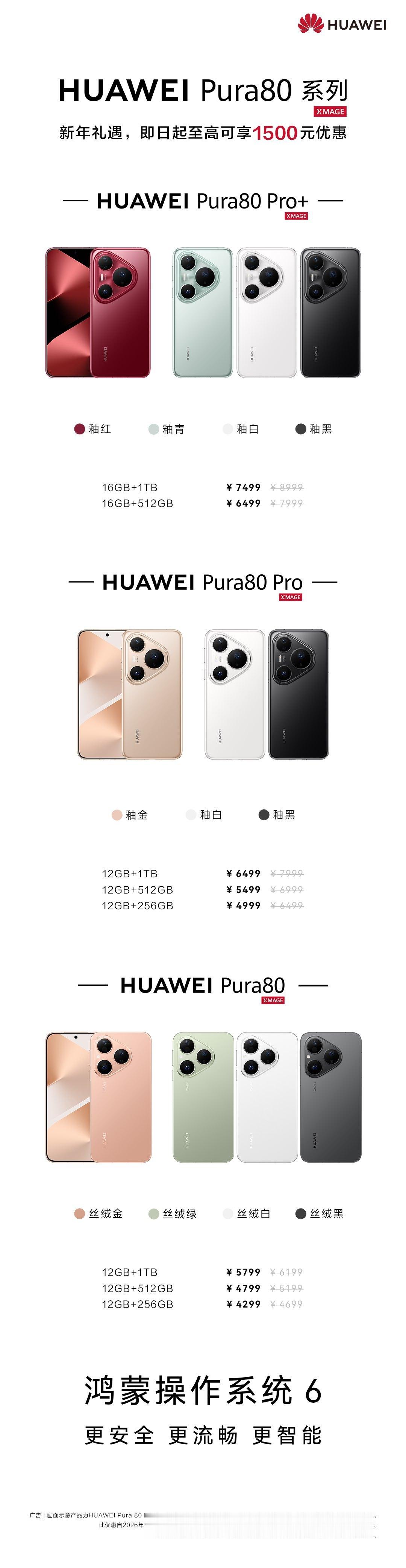 华为官网新春优惠最高降价1800元华为官网新春优惠来袭啦!Mate70系列指定机型最高降1800 元,Pura80系列最高降1500元(数字款首次降400元),连Pura X、WATCH GT6也有优惠,还能享最高700元以旧换新补贴,Pura80更搭载鸿蒙6,而且还带一句话修图功能,这体验大升级!