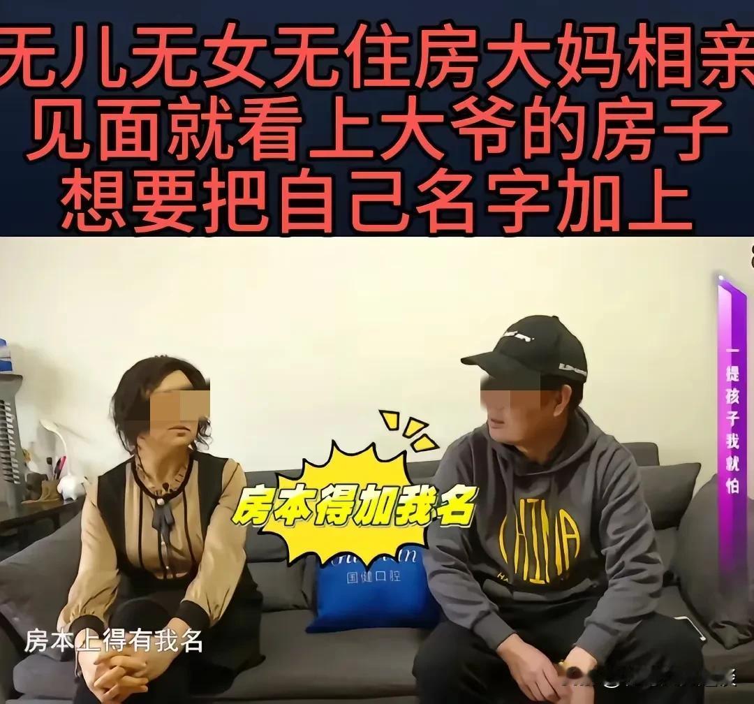 大妈相亲目的性很强,见面就说房本上要加上她的名字。大叔警惕性很强,这是来相亲的还是打劫的。大叔想两个老人相亲在一起生活,互相扶持一下,老了有个伴儿多好。好家伙,上来就要房本,是来相亲的吗?大叔说考虑一下。 大妈不乐意了,说大叔墨叽,没格局,小气。人都跟你了,房本上加个名字怎么了?大妈这是那别人财产不当回事,加个名字就得分你一半的。