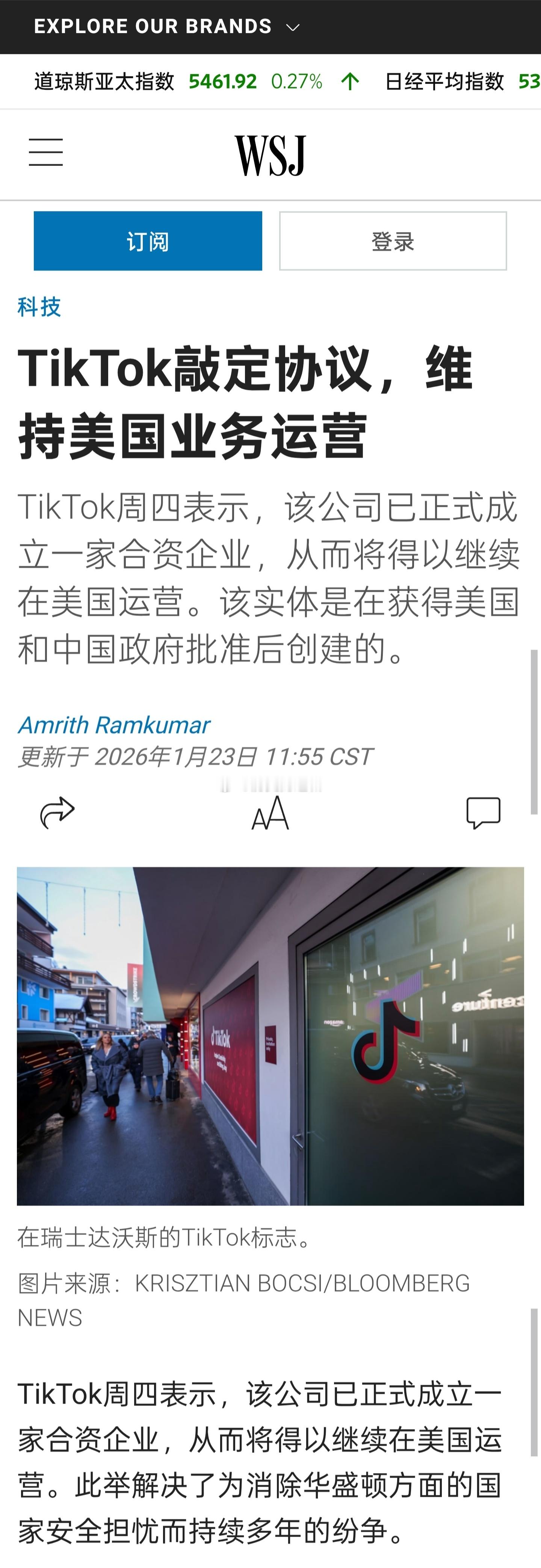 TikTok周四表示,该公司已正式成立一家合资企业,从而将得以继续在美国运营。此举解决了为消除华盛顿方面的国家安全担忧而持续多年的纷争。海外新鲜事