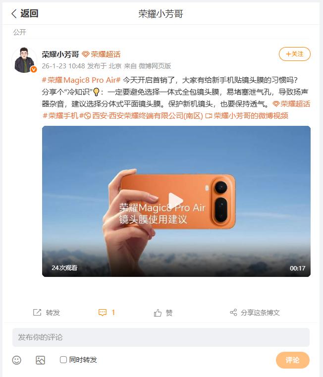 关于新手机贴不贴镜头膜这个问题,荣耀荣耀产品维护与升级小芳哥,给出了非常肯定的回答,建议大家一定要避免贴全包镜头膜,因为荣耀堵塞泄气孔,从而造成扬声器容易出现杂音,这个我真没有想到,全包镜头膜居然会造成这样的影响,小芳哥表示,如果一定要贴镜头膜,选择分体式平面镜头膜,也是较为理想的解决方案 畅聊数码新品 数码资讯