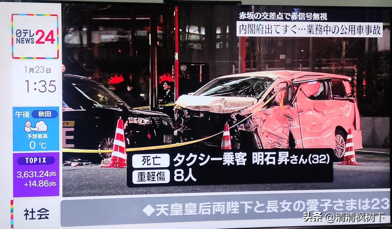 日本内阁府的公用车闯红灯与出租车相撞,一死八伤。 据说是刚从内阁府出来就出了事故。 警方说要以业务过失调查事故原因。 可怜那位出租车司机,祸从天降,不幸罹难。目前伤者信息没有公布,希望能够没有我们中国同胞。