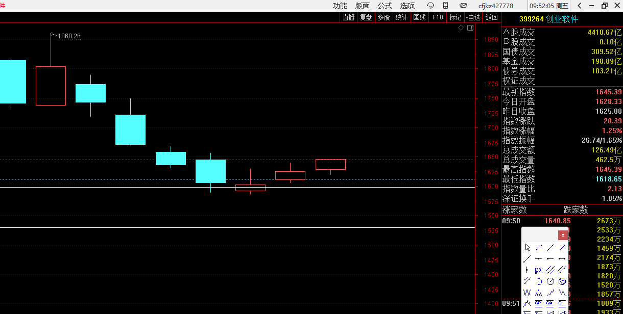 证券分时下一档,注意1736能不能震荡后攻过去,1736是图2这里的谷底线,我说