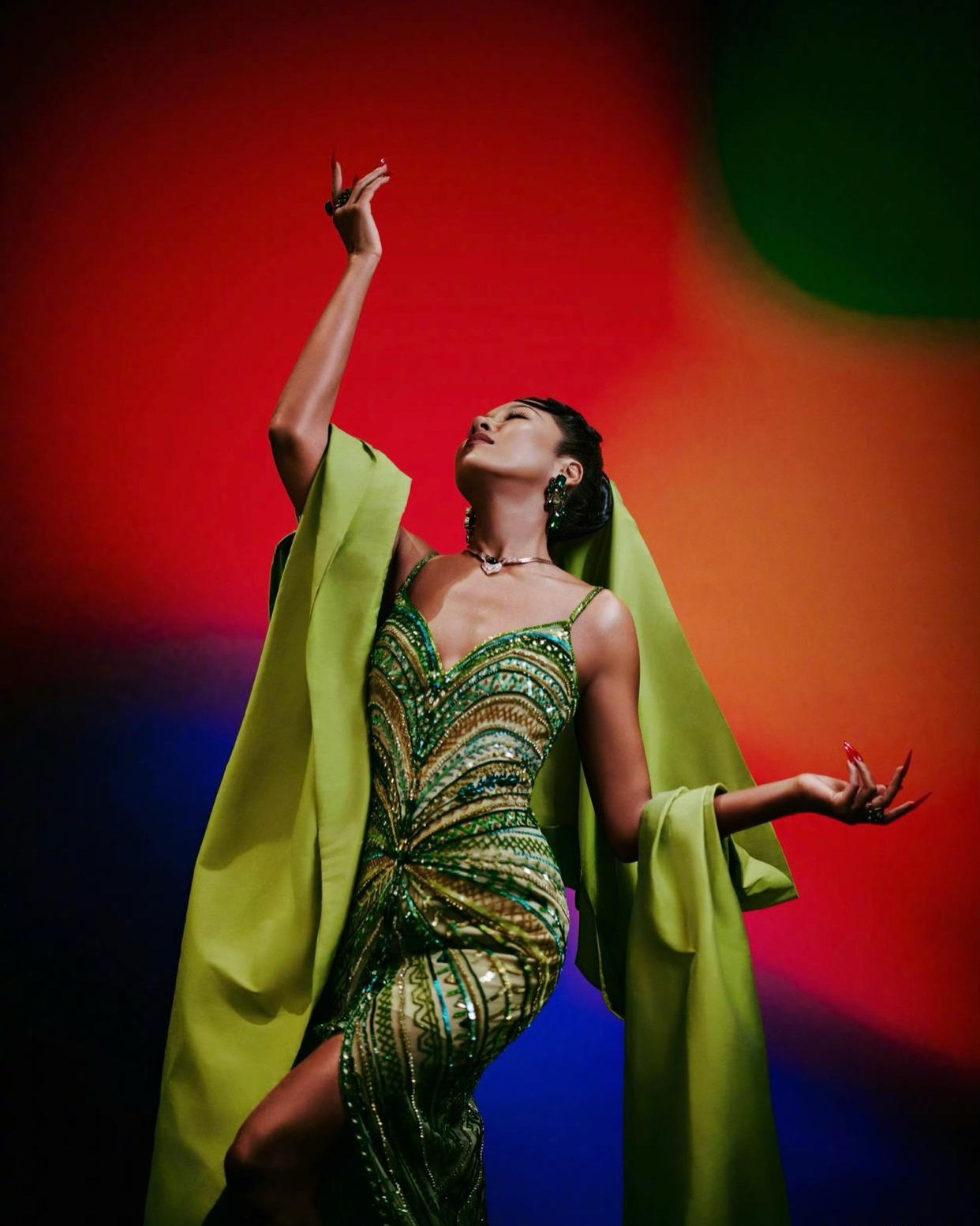 好搞笑,吉克隽逸把自己这身绿色造型称为“香菜公主”,突然觉得画面都充满香菜的味道了。