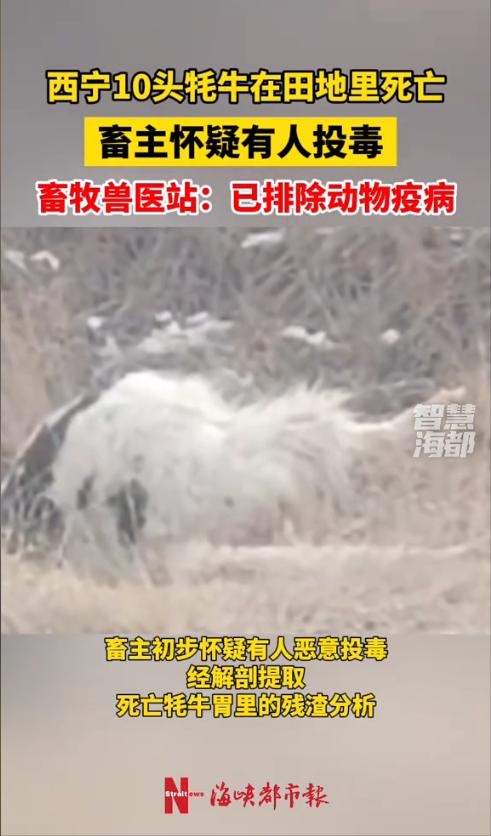 近日,青海西宁,一名牧民养殖户清晨去田里查看时,竟发现自家放养的10头壮硕牦牛竟集体倒在田地里没了气息,口鼻还残留着异常分泌物。畜主心疼得直掉眼泪,怀疑有人恶意投毒,于是赶紧报警! 这下牧民是真急眼了! 据1月19日媒体报道,在青海西宁的清晨,一位牧民像往常一样前往田间巡查,眼前的景象却让他瞬间如坠冰窟:自家悉心饲养的十头膘肥体壮的牦牛,此刻竟毫无生气地横陈在冰冷的土地上。这些庞然大物尸体早已僵硬,口鼻处还挂着令人触目惊心的异常分泌物。 看着这一幕,老人家当场双腿发软,要知道,这些牦牛不仅仅是牲畜,更是全家赖以生存的命根子。按照市场行情,一头成年牦牛的身价就在万元以上,这十头牛倒下,意味着十几万的家产瞬间化为乌有。 当地畜牧兽医站接到消息后火速赶赴现场进行勘查检测,最终得出的结论让人感到后背发凉——经过专业排查,已经确切排除了动物疫病导致死亡的可能性! 既然排除了病死,那剩下的答案便指向了最残酷的真相:这些牛极有可能是被人恶意投毒杀害的!那一刻,畜主眼眶通红,悲愤地拨打了报警电话。这哪里是简单的杀牛,这分明是有人在暗处下黑手,要绝了他家的活路,要让他家“断子绝孙”。 说句实在话,这种行径的恶毒程度,远比直接进屋偷钱要恶劣百倍。 对于生活在钢筋水泥丛林里的城里人而言,牦牛或许只是餐桌上的牛肉或是一个模糊的牲口概念。但对于青海高原上的牧民来说,这就是全家人的“移动印钞机”和救命稻草。产出的奶可以提炼酥油,生下的小牛犊可以变现,耕地拉货也全靠它们。 一头牛的存在,足以支撑一家人好几年的生计。如今一夜之间十头牛全部毙命,这等同于把这个家庭数年的辛苦积累、以及对未来的所有期盼,在一瞬间给掐灭了。 更为棘手的是,这起案件的侦破难度堪比登天。 案发的田地位于广袤的野外,周围方圆几公里都是荒滩野地,哪里会有监控摄像头的影子?投毒者大可以在半夜三更摸黑潜入,撒下毒物后便神不知鬼不觉地消失。 况且经过几天的风吹日晒,现场留下的蛛丝马迹恐怕早已被大自然“销毁”殆尽。警方目前能做的,也只能是从人际关系入手,排查畜主近期是否与人结怨,或者是否因为生意竞争抢了谁的饭碗。 网友们的推测也并非空穴来风——农村地区的邻里矛盾,有时候其复杂程度远超城市人的想象。 仇恨的种子可能埋藏得很浅:或许是因为放牧时不小心踩坏了别人家的一垄青稞,或许是两家的小孩子打架引发了家长护短,又或者是草场的边界划分有了争执。 这些看似鸡毛蒜皮的小事若没处理好,就容易让心胸狭隘之人动了歪心思。毕竟在牧区,牲畜的多少代表着面子和地位,有些人宁愿冒着坐牢的风险,也要让对方倾家荡产,以泄心头之恨。 然而,无论背后有着怎样的纠葛,采取投毒这种手段,都是最下作、最卑劣的行为。 倘若真有矛盾,大可以当面锣对面鼓地把话讲清楚,偷偷摸摸对不会说话的牲口下毒手,算什么本事?这种人今天敢在草料里下毒毒死牛,明天就敢在村里的水井里下药,后天说不定就敢对活人下手。让这样一个心理扭曲的人潜伏在村子里,简直就是埋下了一颗随时可能引爆的定时炸弹。 目前,当地公安、农业、畜牧等多个部门已经联合介入取证,但说句大实话,这案子想要水落石出,恐怕得靠“人证”而非“物证”——重点在于观察谁最近的行为举止反常、谁跟畜主有着深仇大恨、或者是谁在案发后突然消失乃至表现出反常的热情。 牧民养大一头牛谈何容易,那是顶着高原的风吹日晒,几十年如一日才攒下的这点家底。 一头牦牛从小牛犊拉扯到能产奶、能干活,至少需要三年的周期。这十头牛,很可能凝聚了老人家大半辈子的心血。每天天还没亮就要爬起来去割草,寒冬腊月也要顶着刺骨的暴风雪去添加饲料,好不容易把牛养得壮壮实实,结果一夜之间回到了“解放前”,这种打击谁能承受? 我们衷心希望警方能够尽快抽丝剥茧查出真凶,给这户遭受重创的人家一个公道。 更希望这起惨剧能给所有人敲响一记警钟——那些守护着我们肉蛋奶供应源头的牧民,他们的安全感同样需要社会来守护。别让老实本分的人吃亏,也别让心怀叵测的坏人逍遥法外。 信息来源:《西宁10头牦牛在田地里死亡,畜主怀疑有人投毒,畜牧兽医站:已排除动物疫病》海峡都市報