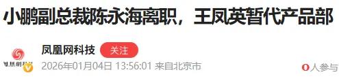 魏斌休假并非个例,小鹏近期人事变动密集。1月4日,据多家媒体报道,小鹏汽车产品中心副总裁陈永海已于2025年12月离职,其原有职务由小鹏汽车总裁王凤英暂时接替。此外,2025年10月,小鹏汽车自动驾驶中心发布内部信宣布重要人事变动:李力耘不再担任自动驾驶中心负责人,由世界基座模型负责人刘先明接替该职位。这是小鹏汽车自2023年8月吴新宙离职后,自动驾驶业务经历的又一次重大人事调整。