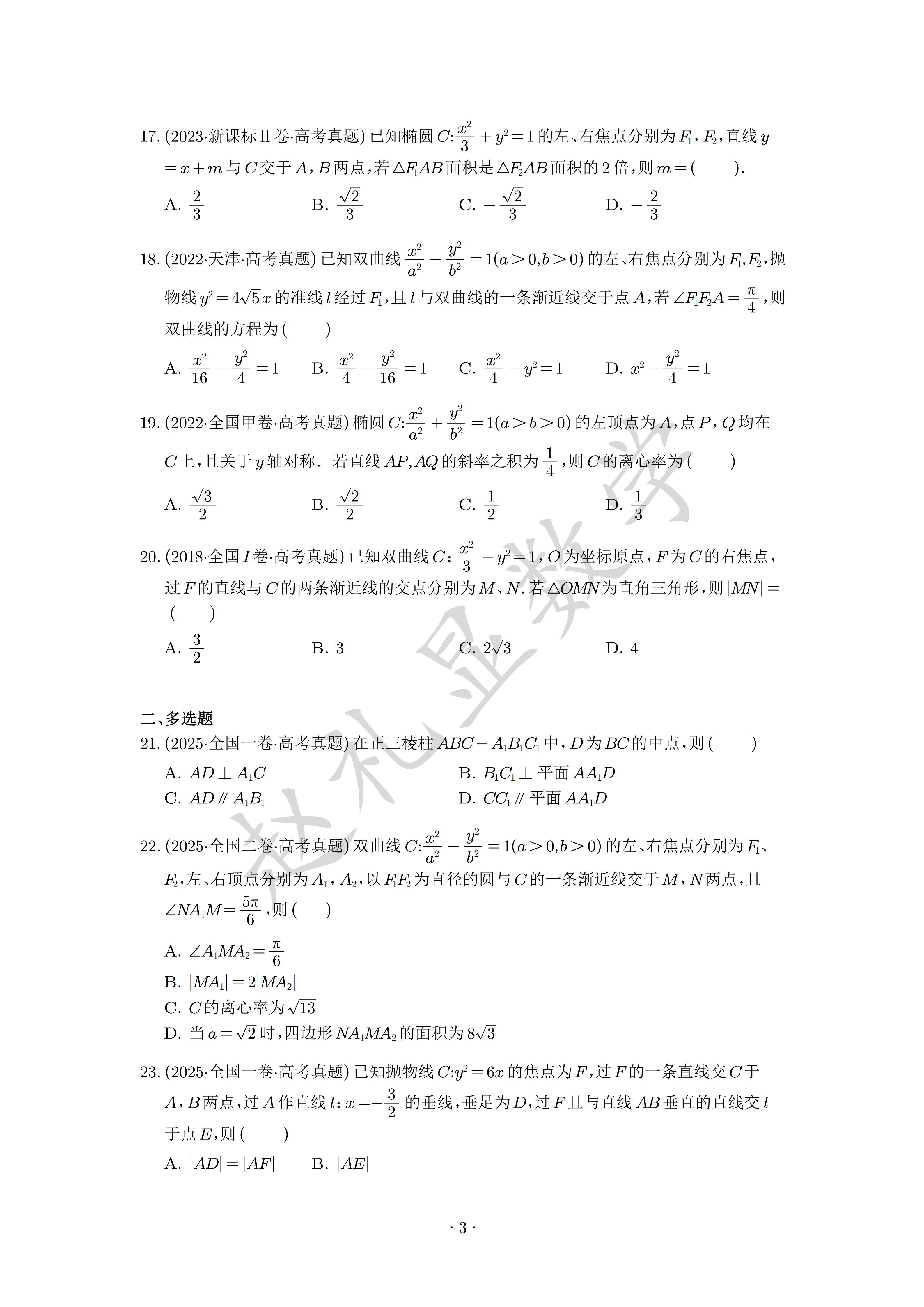 寒假就做完这60题,不信圆锥曲线还学不好。【68页】圆锥曲线专题专练...