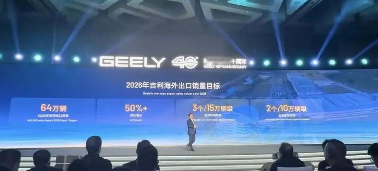 【2026年吉利出口销量目标为64万辆 打造马来西亚AHTV产业园】1月22日,在“吉利创业四十周年”吉利控股集团战略解析会上,吉利汽车集团公布2026年吉利销量目标和战略规划。2026年吉利出口销量目标为64万辆,同比增长50%,形成3个15万辆级、2个10万辆级的全球区域市场,将重点发力三个方向:首先,以东南亚作为战略枢纽,要打造马来西亚AHTV产业园为桥头堡,构建年产50万辆的“延-产-销-服”的一体化产业园,辐射东盟市场。