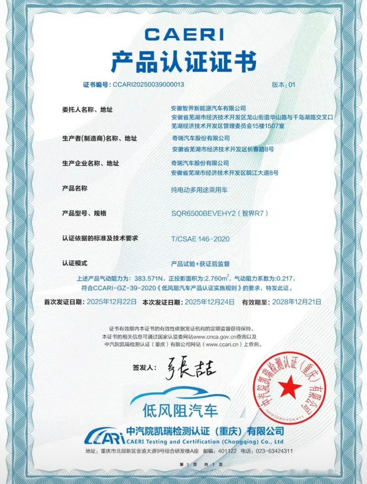 1月22日,智界汽车执行董事及执行副总裁赵长江在社交媒体上回应了网友关于智界R7的风阻系数是怎么来的,是不是真的全球最低?赵长江表示,智界R7全球量产SUV最低风阻是吹(风洞)出来的,不是吹出来的。赵长江表示,智界R7风阻系数0.217,是在国家标准工况条件下,基于中汽研检测风洞国标标准测试,在车速120km/h下的测试成绩,也是目前可查询经公证公示符合国标要求的商用量产SUV最低风阻纪录。