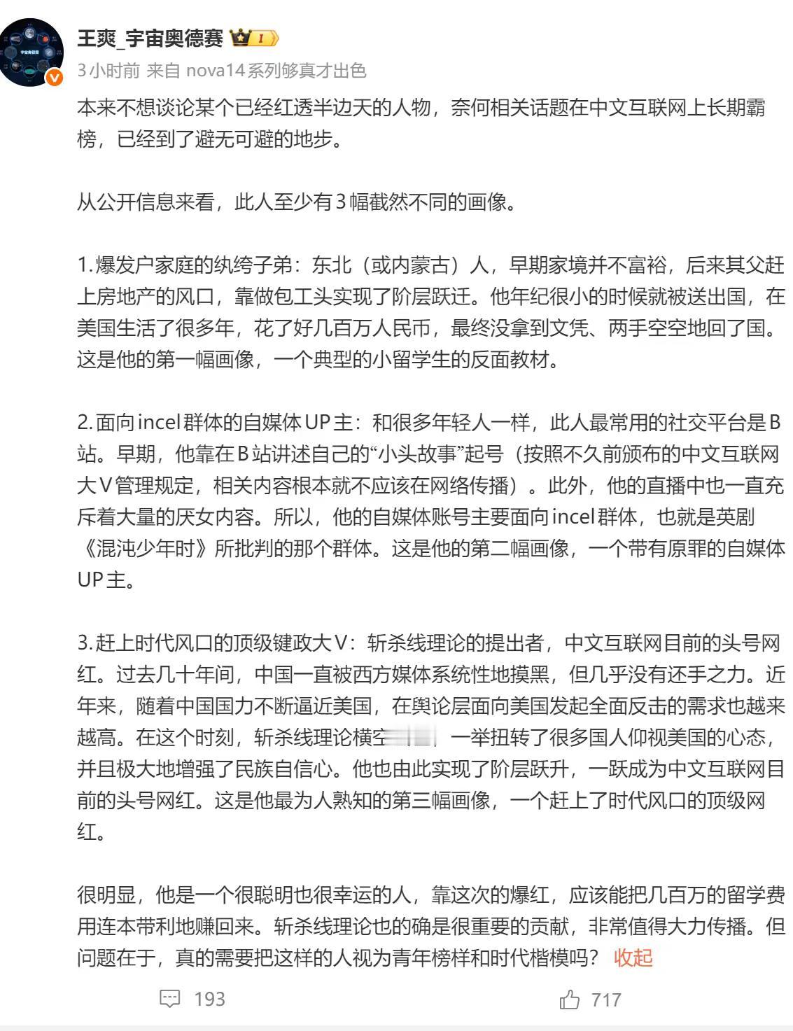 大V 宇宙奥德赛 发了一个帖子 关于最近很火的某网红