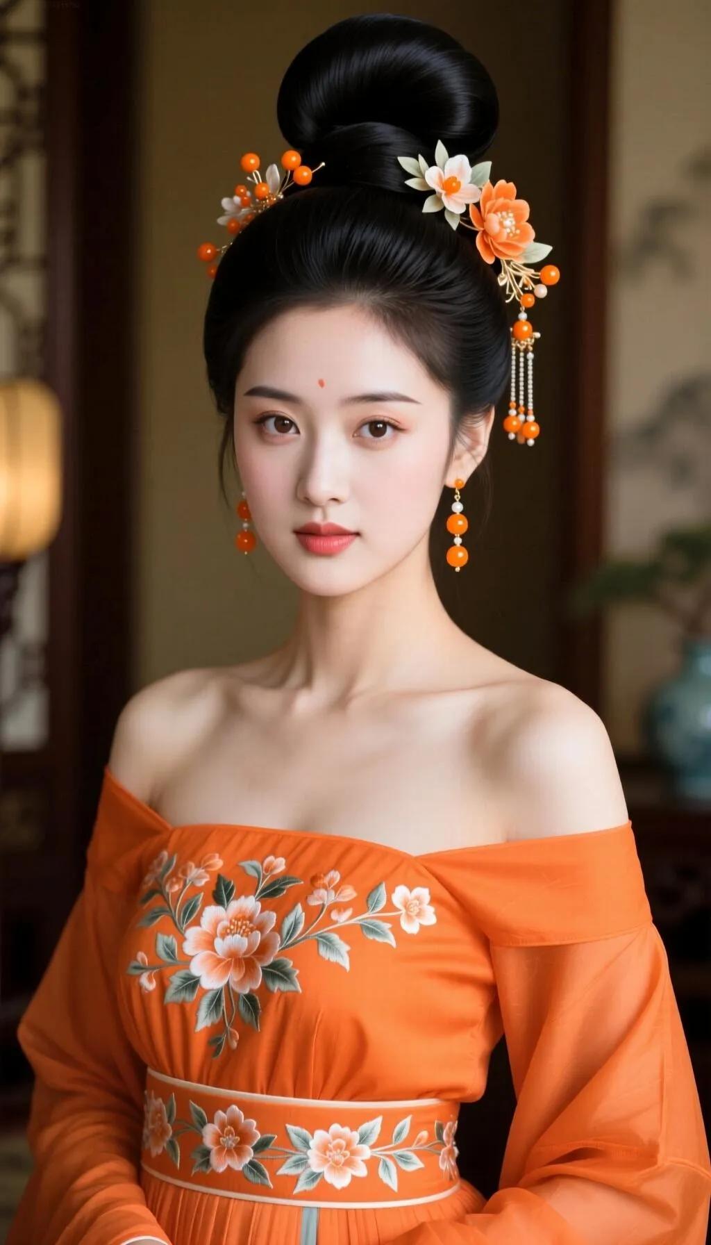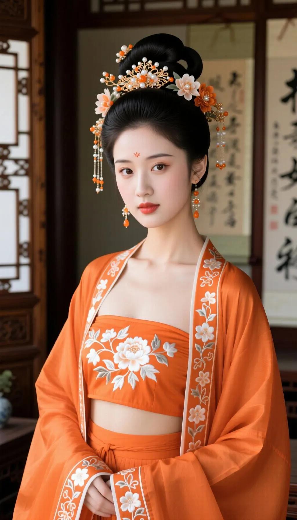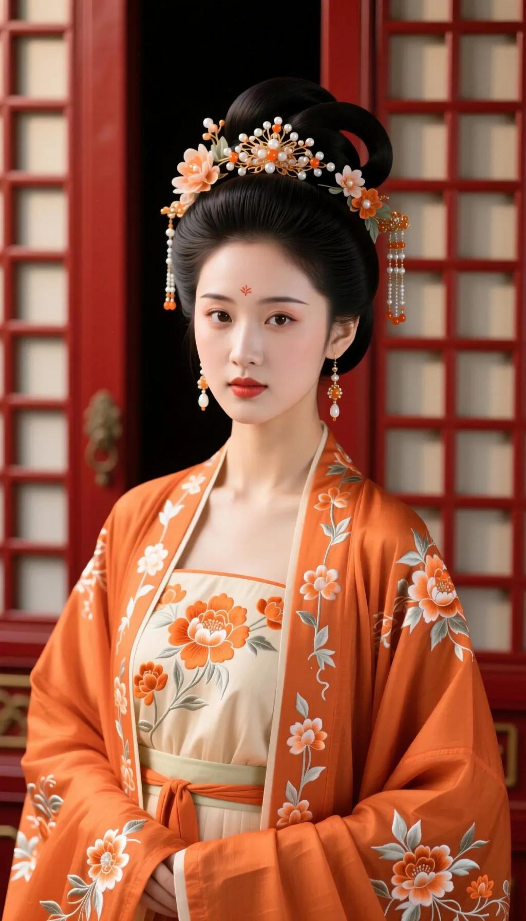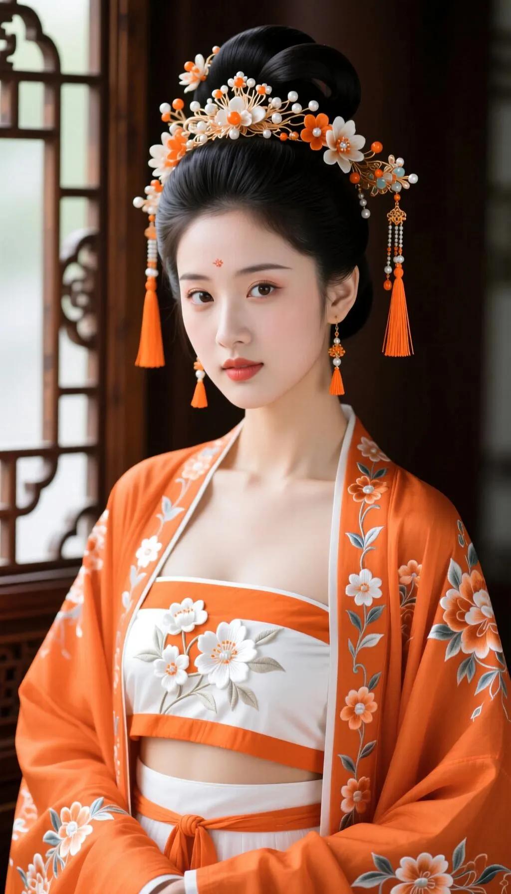 古典美人,花钿妆点,红衣飘逸,古风韵味十足。