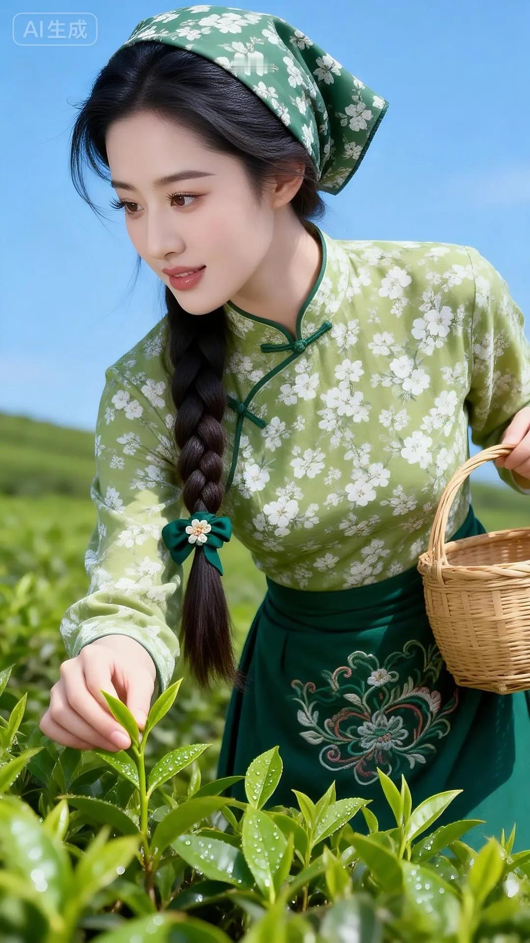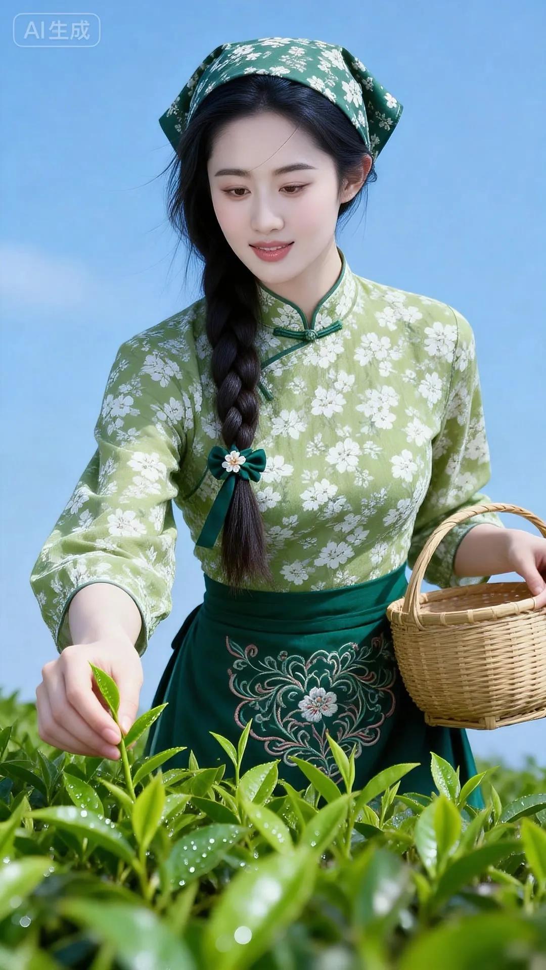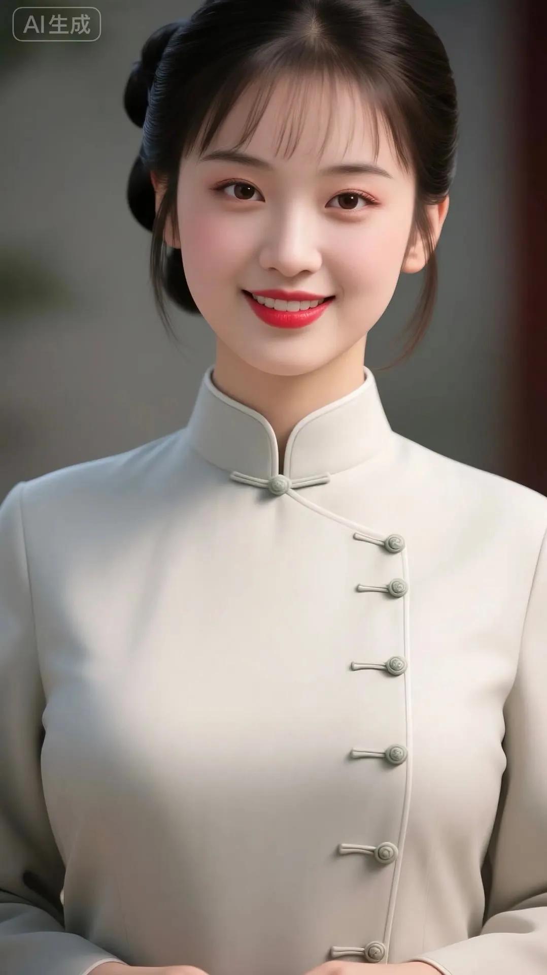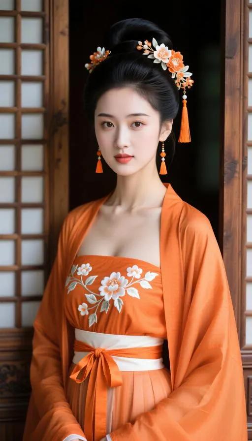 古典美人,花钿妆点,红衣飘逸,古风韵味十足。