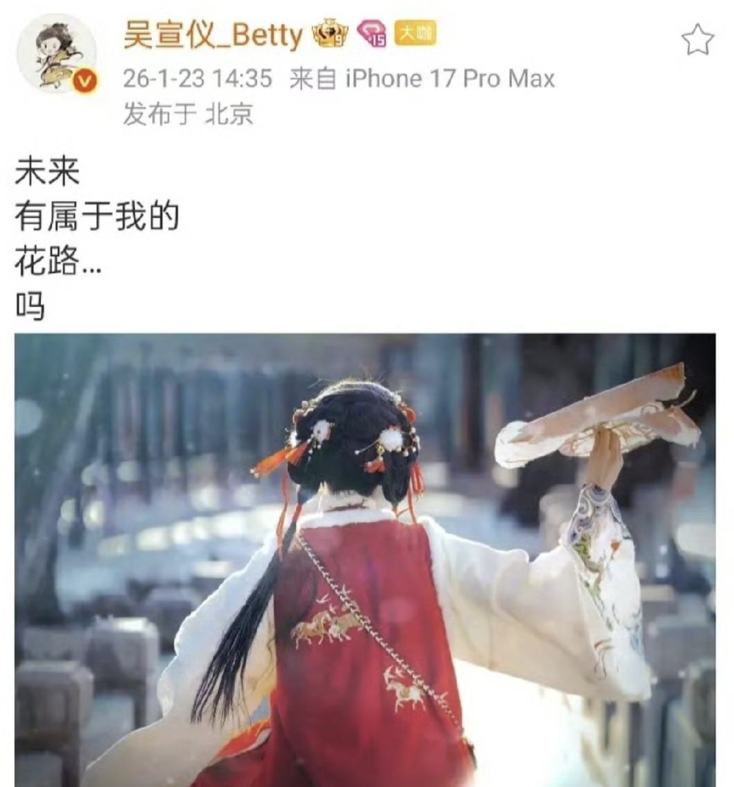 吴宣仪咯噔文学,未来有属于我的花路吗,这是emo了吗,最近频繁发这种哎。