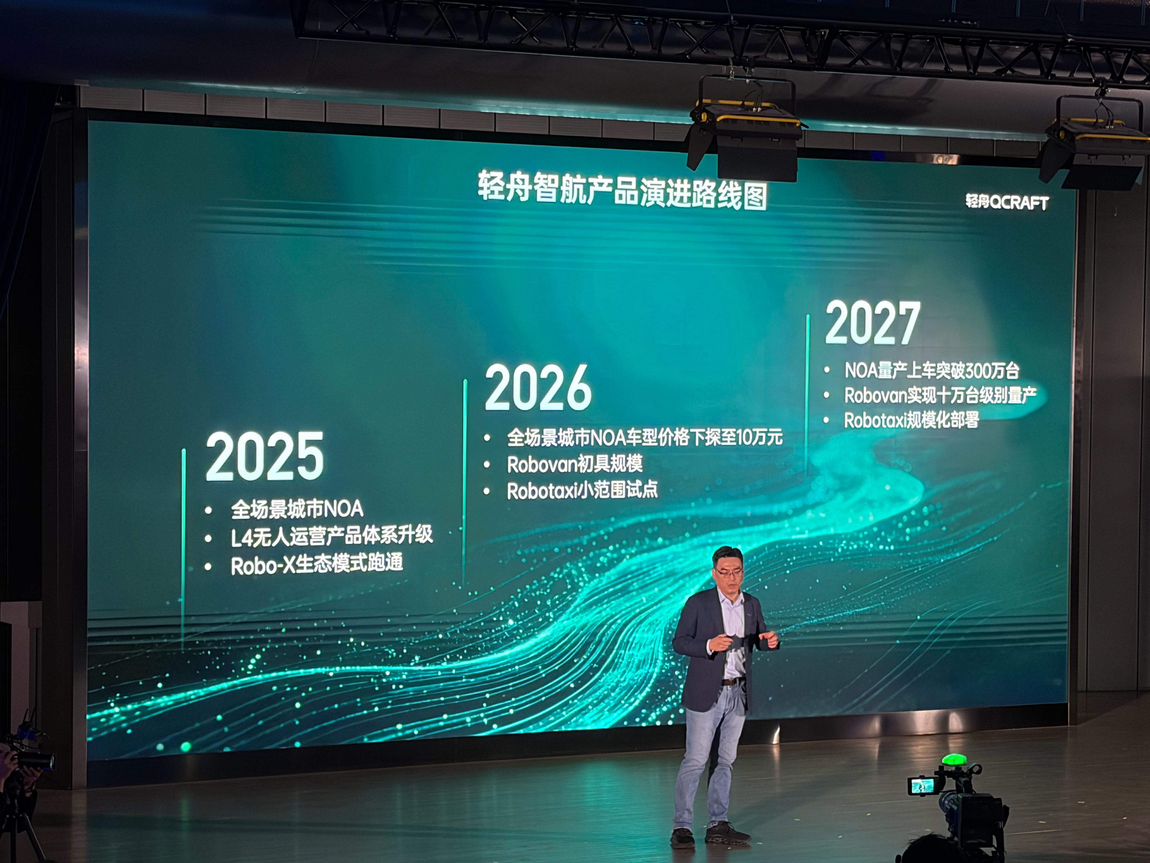 轻舟智航L4版图。要打造自动驾驶安卓平台,覆盖Robobus、Robovan、Robotaxi。于骞强调,轻舟无人物流车底盘也做到车规级,基于无图端到端打造,做到量产即运营。预计2027年Robovan十万级,Robotaxi规模化部署。当然,这里面还包括出海的布局。这一套看起来很全面了。轻舟智航