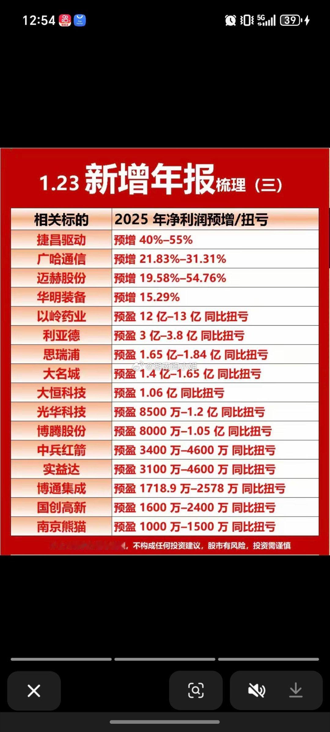 1.23周五最新:上市公司年报业绩预告55家公司披露年报业绩预告。业绩亏损股,特别是连续多年亏损股,需要警惕