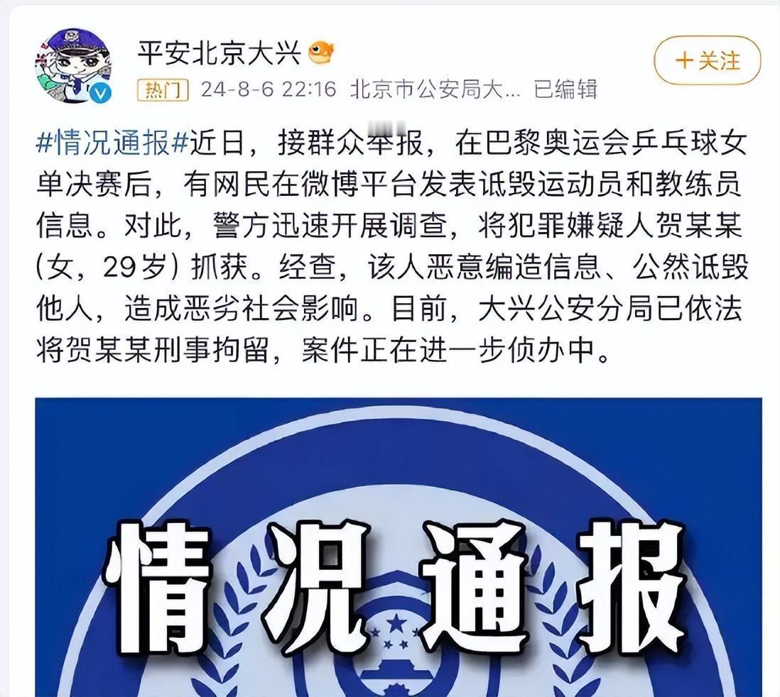 畸形饭圈已无是非观念,追星疯狂,不管不顾,看看大兴警方抓贺某某,就是造谣诬陷陈梦和马琳教练的,各地警方陆续抓了六,七拨,最近又有人出来开始新一轮诋毁谩骂陈梦。