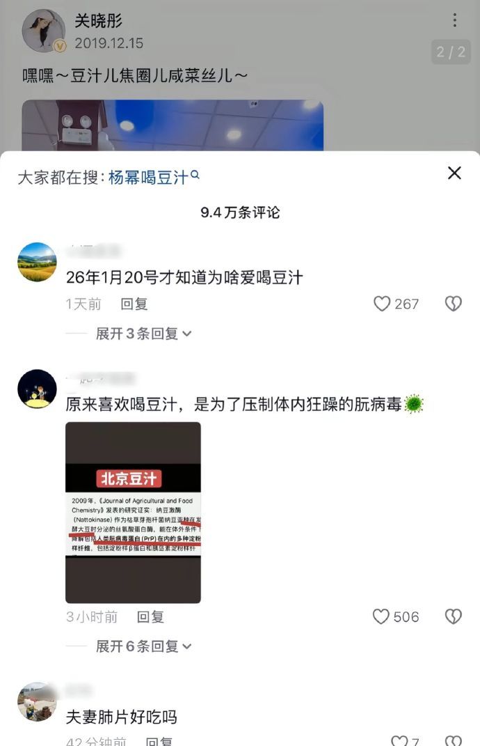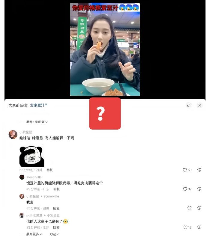 抖人一天一个阴谋论。关晓彤爱喝豆汁,抖人说是她吃人肉,解毒···