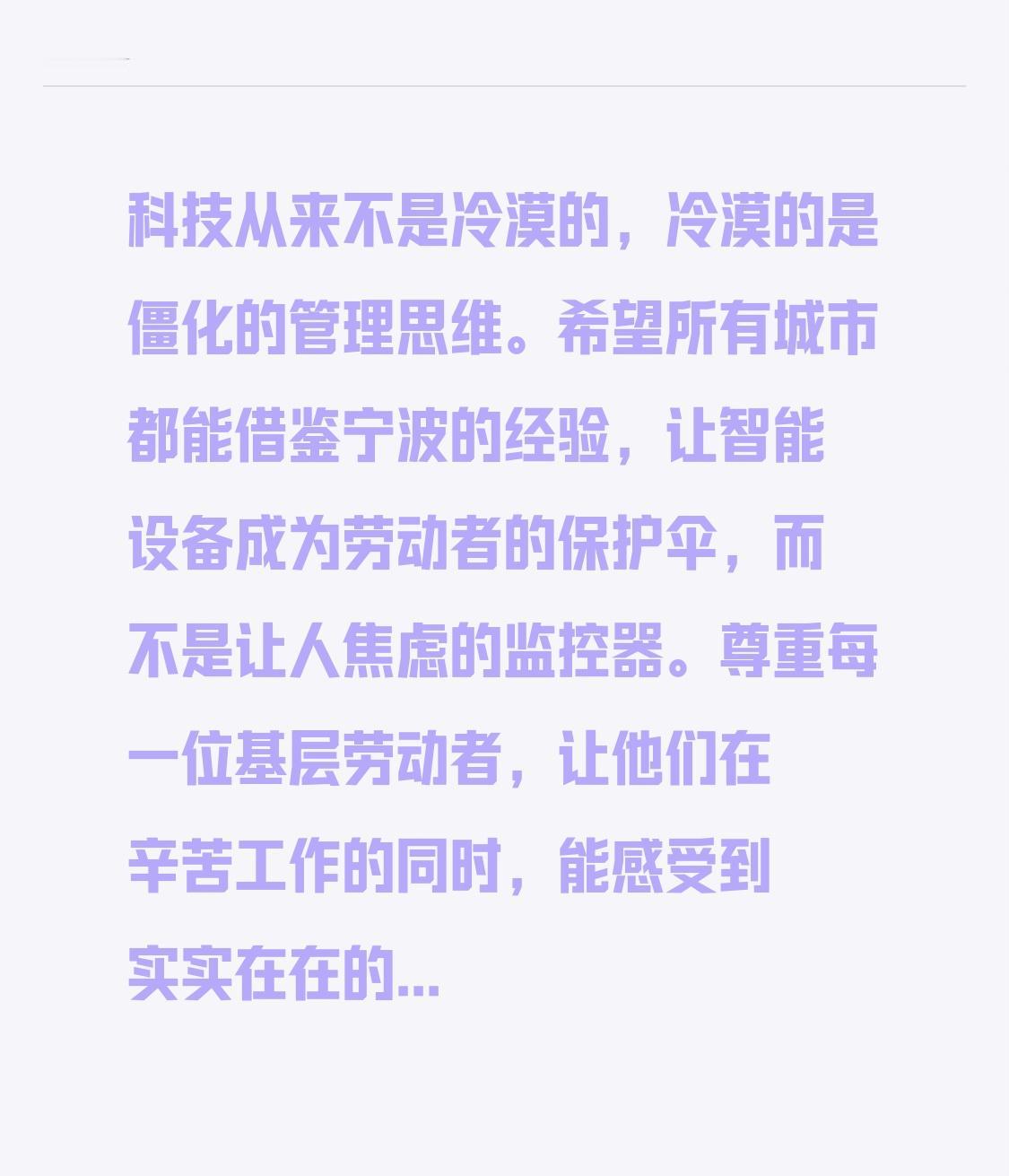 官方通报环卫工戴家人们刷到了吗?山西运城环卫工雪天作业不敢休息,直言“戴了定位工牌,不动就罚款”!视频一出全网炸了,骂声全冲“电子镣铐”去了,结果官方连夜通报反转:根本没有静止罚款的规定!这到底是管理苛政还是一场误会?工牌背后藏着的真相太意外了! 咱们先还原事件全貌!1月19号运城下大雪,网友偶遇环卫工顶着风雪清扫,问他为啥不歇会儿,大爷无奈说“单位发的定位器,不动就罚款”。这话瞬间戳中大家的痛点,环卫工电子工牌被指电子镣铐 直接冲上热搜,网友们怒批“把劳动者当机器监控”“管理太冷血”。 可就在舆论发酵3天后,运城市城管局正式通报打脸传言:电子工牌是2023年底就配的,覆盖1300名环卫工,核心功能根本不是罚款,而是SOS紧急救助、自动打卡和语音调度!官方明确说,系统检测到长时间静止,管理员会第一时间去现场查看,怕的是工人遇到意外,比如摔倒、突发疾病,从来没有“不动就罚款”的规定。 本以为是管理不当,没想到转折来了——这电子工牌不仅不是“镣铐”,反而在很多地方成了环卫工的“保命符”!宁波早就推广了同款工牌,8000多名环卫工随身佩戴,58岁的王阿姨说:“以前上厕所都怕被说偷懒,现在工牌能证明在岗,正常休息完全没人管”。 更让人暖心的是工牌的黑科技:内置北斗+GPS三重定位,室外精度能到2米,一键按下SOS键,后台3分钟就能锁定位置派救援。宁波环卫工刘师傅扫雪时打滑摔倒,按了报警键不到5分钟,救护车就到了现场,这要是搁以前,凌晨作业的他可能要等很久才有人发现。而且工牌还有隐私模式,下班后长按就能关定位,只留报警功能,根本不存在全天候监控。 可为啥运城会有“罚款”传言?原来问题出在执行沟通上!有环卫工不清楚工牌功能,把“静止预警”误传成“静止罚款”,加上雪天作业本就辛苦,情绪一上来更易引发误解。其实全国很多城市都在用智能工牌,解决的是传统管理的大难题:以前60岁以上环卫工占比超40%,不会用智能手机打卡,每月考勤纠纷就有30多起,现在工牌自动打卡,纠纷直接降为零。 网友们看清真相后纷纷改口:“错怪管理部门了,这工牌太实用了”“科技就该这么用,既保障安全又方便工作”。其实大家愤怒的从来不是科技管理,而是怕技术被滥用,怕劳动者的尊严被忽视。 环卫工是城市的守护者,凌晨3点就得上岗,在快车道、桥洞等危险区域作业,2022年宁波一年就发生21起环卫工意外,有6起因为联系不上延误了救援。我们真正在意的,是管理既要讲效率,更要有人情味。就像杭州那样,设立温暖驿站让工人歇脚,深圳遇到极端天气就动态调整考核,这才是科技该有的温度——不是监控人,而是服务人、保护人。 这场误会也给所有管理者提了个醒:新技术推广时,一定要把功能说清楚、讲明白,别让“好心办了坏事”。电子工牌的初衷是好的,既解决了传统管理调度难、安全保障不足的问题,也让环卫工作更透明,但关键在于执行中要守住人性化的底线。 科技从来不是冷漠的,冷漠的是僵化的管理思维。希望所有城市都能借鉴宁波的经验,让智能设备成为劳动者的保护伞,而不是让人焦虑的监控器。尊重每一位基层劳动者,让他们在辛苦工作的同时,能感受到实实在在的关怀,这才是城市最温暖的底色。 你觉得环卫工该配电子工牌吗?你身边有类似的智能管理设备吗?评论区说出你的看法,点赞关注,一起为科技向善点赞,为基层劳动者发声!电子工牌无处罚