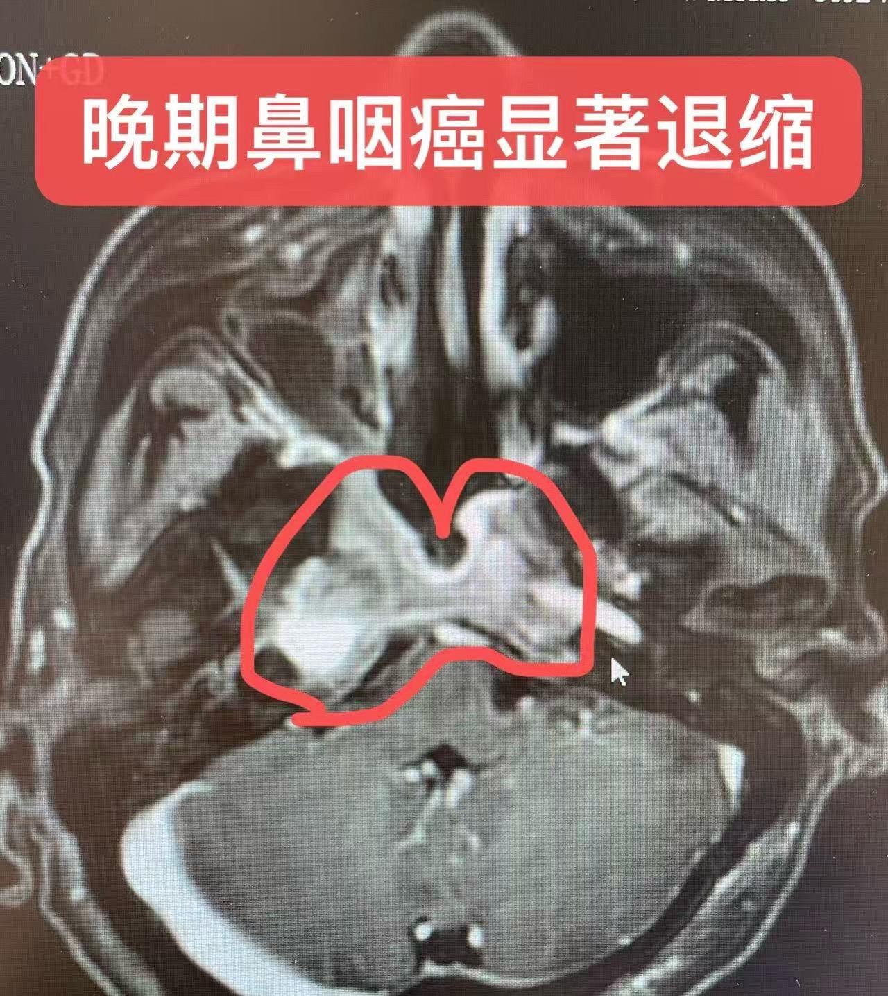 晚期 鼻咽癌 的治疗。晚期鼻咽癌,病理:未分化型非角化性癌,分期T4N2M0,肿瘤压迫脑干,进食完全梗阻,非常危险!GP化疗不耐受,身体衰弱!来我院后,靶向爱必妥➕周方案、低剂量试探白紫➕PD1单抗,经过多轮治疗退缩!体质好转,遂行同步精准放疗➕靶向化疗,目前肿瘤显著退缩!继续温和治疗!经验:低剂量药物逐步推进,兼顾效果和身体的耐受性!