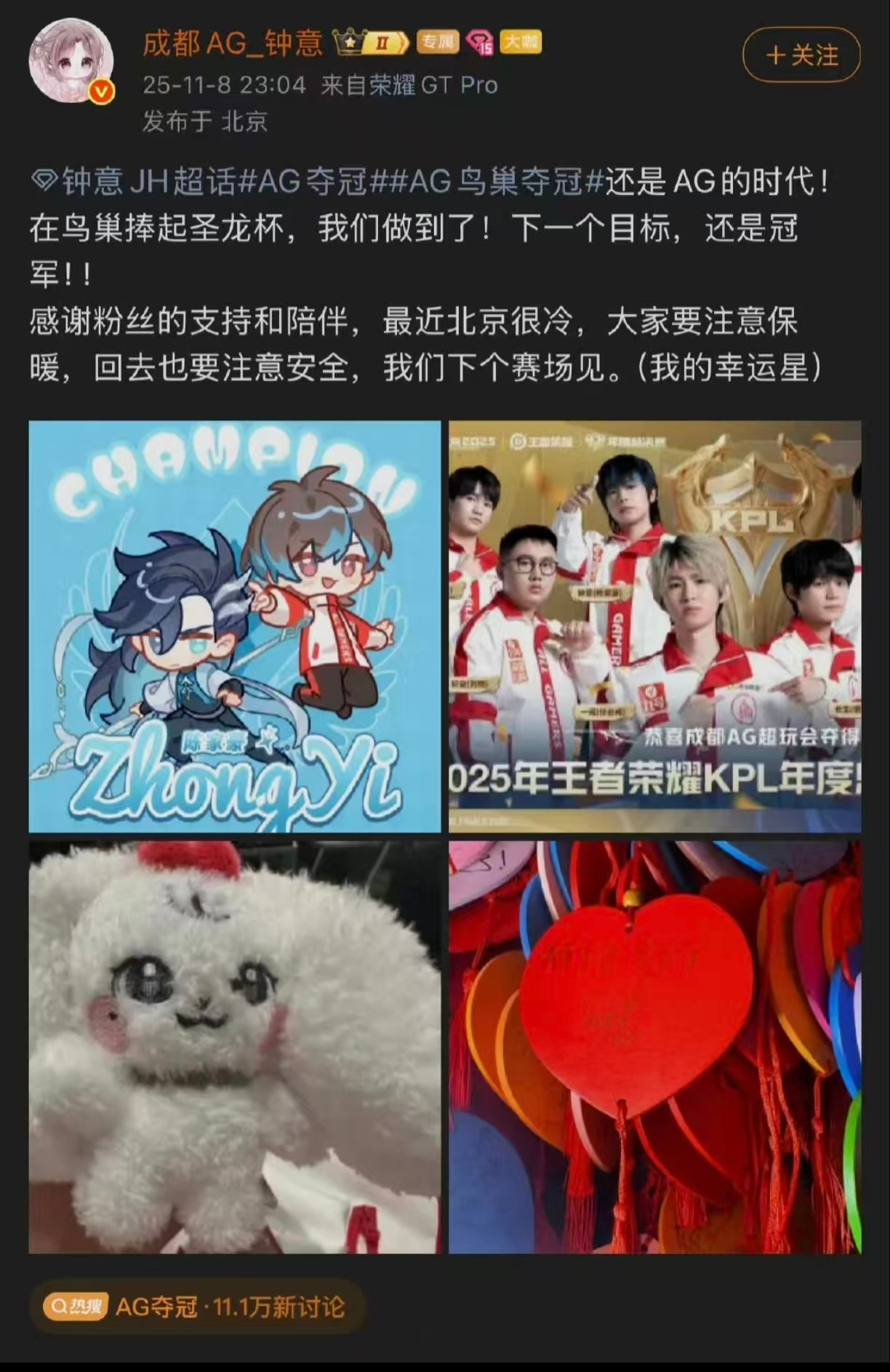 王者荣耀KPL选手钟意疑似追星张元英成功