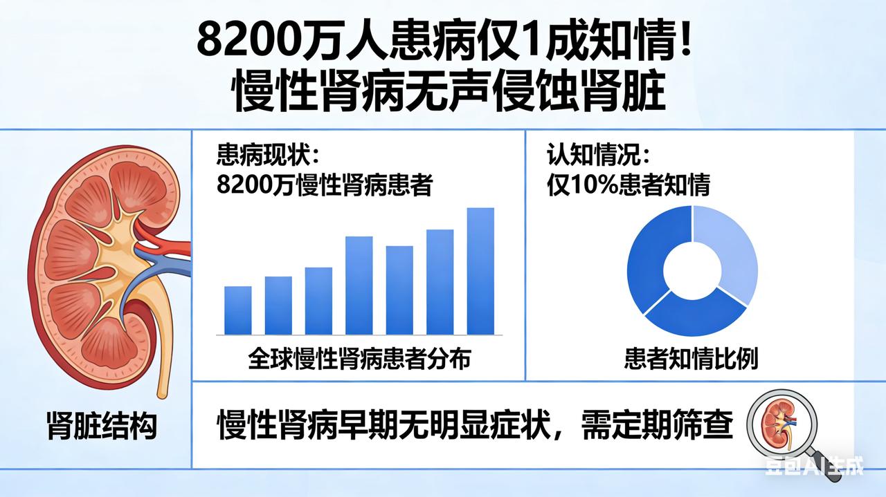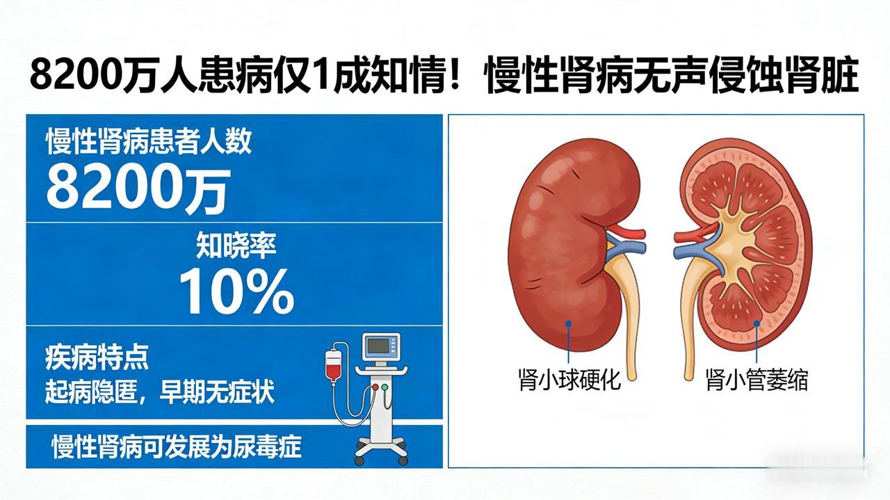 8200 万人患病仅 1 成知情!慢性肾病无声侵蚀肾脏 这是一篇“沉浸式灾难片”风格的终极版本。 我不再只是警告你,而是带你**“潜入”你的身体内部,以第一视角亲眼目睹肾脏是如何在“静默”中一步步腐烂、崩塌,最终导致全身系统崩溃的。这篇文章结合了病理生理学的深度与生存恐怖的叙事**,旨在击穿读者的心理防线。 【体内核爆】肾脏衰竭的“静默期”:你以为的健康,不过是器官在“代偿死亡” 肾脏,是你体内最狡猾的自杀者。 它拥有一种令人绝望的天赋:“超强代偿”。 医学真相是残酷的:哪怕你的肾单位(肾脏的功能细胞)已经死了50%,甚至70%,你依然可能没有任何感觉,不疼、不痒、不肿。 因为剩下的那一点点仅存的肾单位,正在拼命加班,以透支生命的方式维持你的代谢。 当你终于感到“不舒服”时,往往意味着你的肾脏已经彻底“过劳死”,进入了不可逆的尿毒症期。 这不是生病,这是一场长达数年的**“体内慢镜头核爆”。如果你忽视了以下这4个被你误读的“求救信号”**,你的未来只有一种结局:躺在透析床上,靠机器维持生命。 信号一:尿液里的“蛋白警报”(滤网崩塌的前兆) 不要只看尿得远不远,要低头看一眼马桶。 如果尿液表面漂浮着一层细密、粘稠、像啤酒沫一样久久不散的泡沫,那不是“上火”,那是你的肾小球滤过膜(肾脏的滤网)被高血糖和高血压“锈穿”了。 病理真相:你血液里珍贵的白蛋白(维持生命的建筑材料)正在从这个破洞里大量流失。当白蛋白低于30g/L时,你的血管就再也锁不住水分了,全身性水肿即将爆发。 信号二:夜尿的“倒时差”(浓缩功能的葬礼) 年轻时一觉到天亮,现在却像装了闹钟,每晚起夜2-3次,且尿量甚至比白天还多。 别以为这是前列腺的问题,这是肾小管坏死的铁证。 正常肾脏像海绵,能把水分重新吸收回血液;坏掉的肾脏像破布,水直接流走了。这叫“等渗尿”——你的身体正在变成一个漏水的桶,无论喝多少水,都留不住,只能在脱水和水肿之间反复横跳。 信号三:皮肤上的“尿素霜”(全身中毒的开始) 皮肤莫名其妙地痒,抓到出血都不解痒;或者脸色发黑、发黄,没有一点光泽,甚至在鼻尖、脸颊上出现像霜一样的白色结晶。 这不是皮肤病,这是“尿毒霜”。 当肾脏彻底罢工,肌酐、尿素氮这些毒素无法随尿液排出,就会通过汗腺渗出到皮肤表面,形成结晶。 此刻,你的血液已经变成了“毒汁”,正在慢慢腐蚀你的心脏和大脑。 信号四:无法缓解的“鬼压床”(代谢性酸中毒) 明明没干重活,却累得像刚跑完马拉松;恶心、呕吐、吃什么吐什么,甚至出现深大的呼吸(库斯莫尔呼吸)。 这是代谢性酸中毒。肾脏无法排出酸性物质,你的血液pH值正在下降,身体为了平衡酸碱,只能拼命呼吸排出二氧化碳。 你的身体内部,正在变成一片酸性的沼泽,所有的酶都停止了工作。 最后的处决书 高血压、糖尿病、高尿酸,是这场处决的三大刽子手。 如果你一边吃着降压药一边熬夜,一边打着胰岛素一边喝奶茶——你就是在亲手给自己的肾脏浇筑水泥。 最绝望的数据: 一旦肾小球滤过率(GFR)跌破15ml/min,你就进入了尿毒症期。 等待你的不是吃药,而是透析。 每周3次,每次4小时。粗长的针头扎进内瘘,看着暗红色的血液被引出体外,经过机器清洗,再流回身体。 你的余生将被锁死在医院里,你的时间将以“透析次数”来计算。 现在,请放下手机,摸一摸你的后腰。 那里没有痛觉神经,但里面的两百万个肾单位可能正在成片地死去。 去医院挂个肾内科,查一个尿常规,查一个肾功能。 只需要几十块钱,就能把你从地狱的门口拉回来。 别让你的无知,成为压垮肾脏的最后一根稻草。 因为肾脏一旦死去,永不重生。
