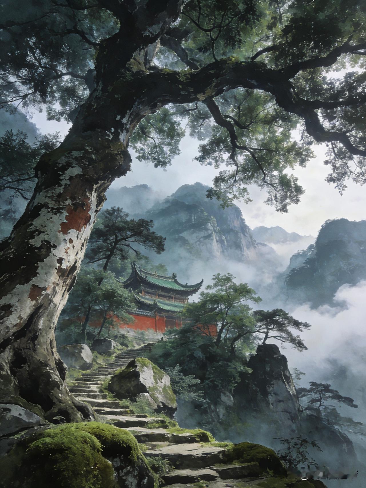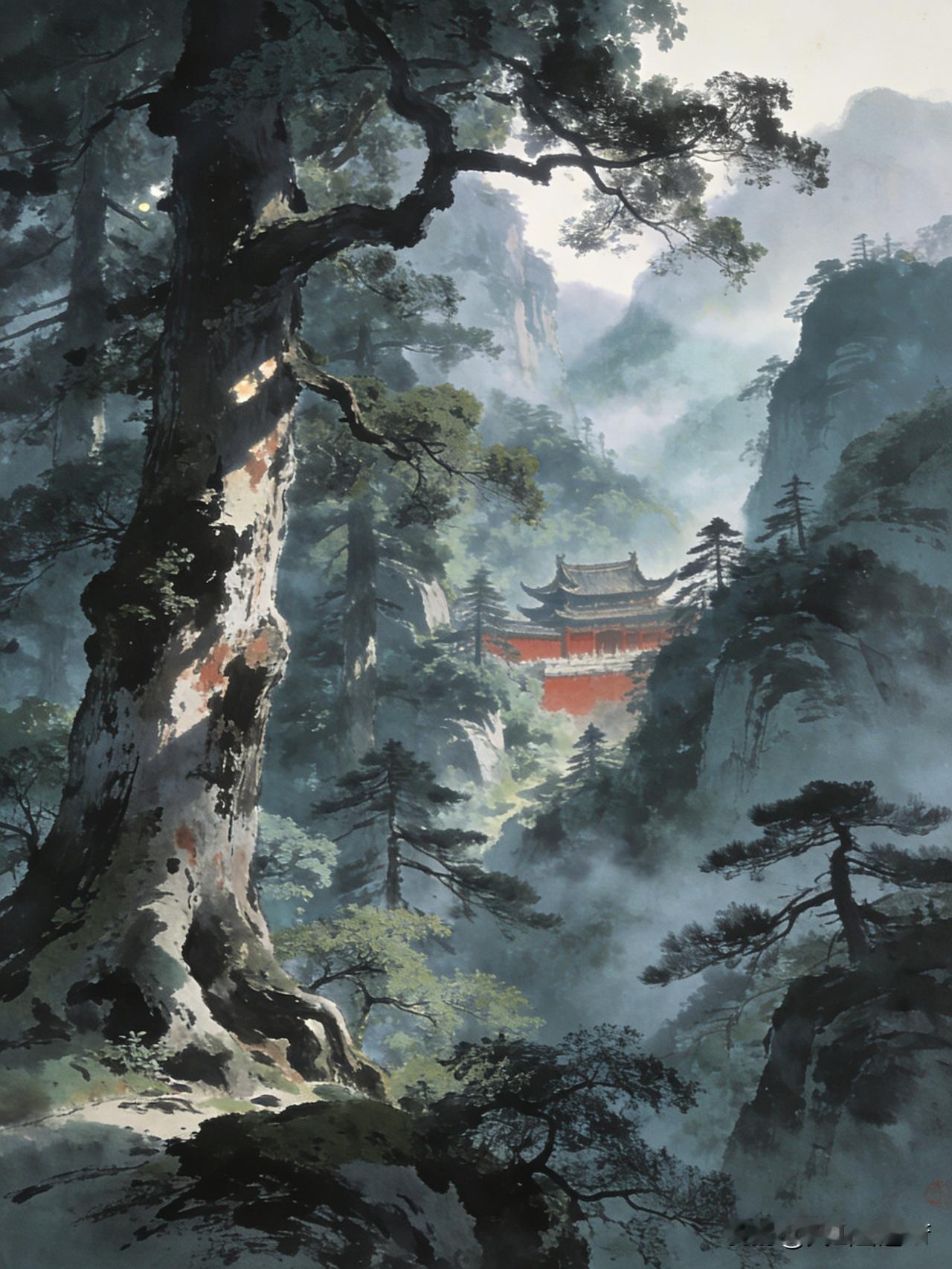 迎客松,深山藏古寺