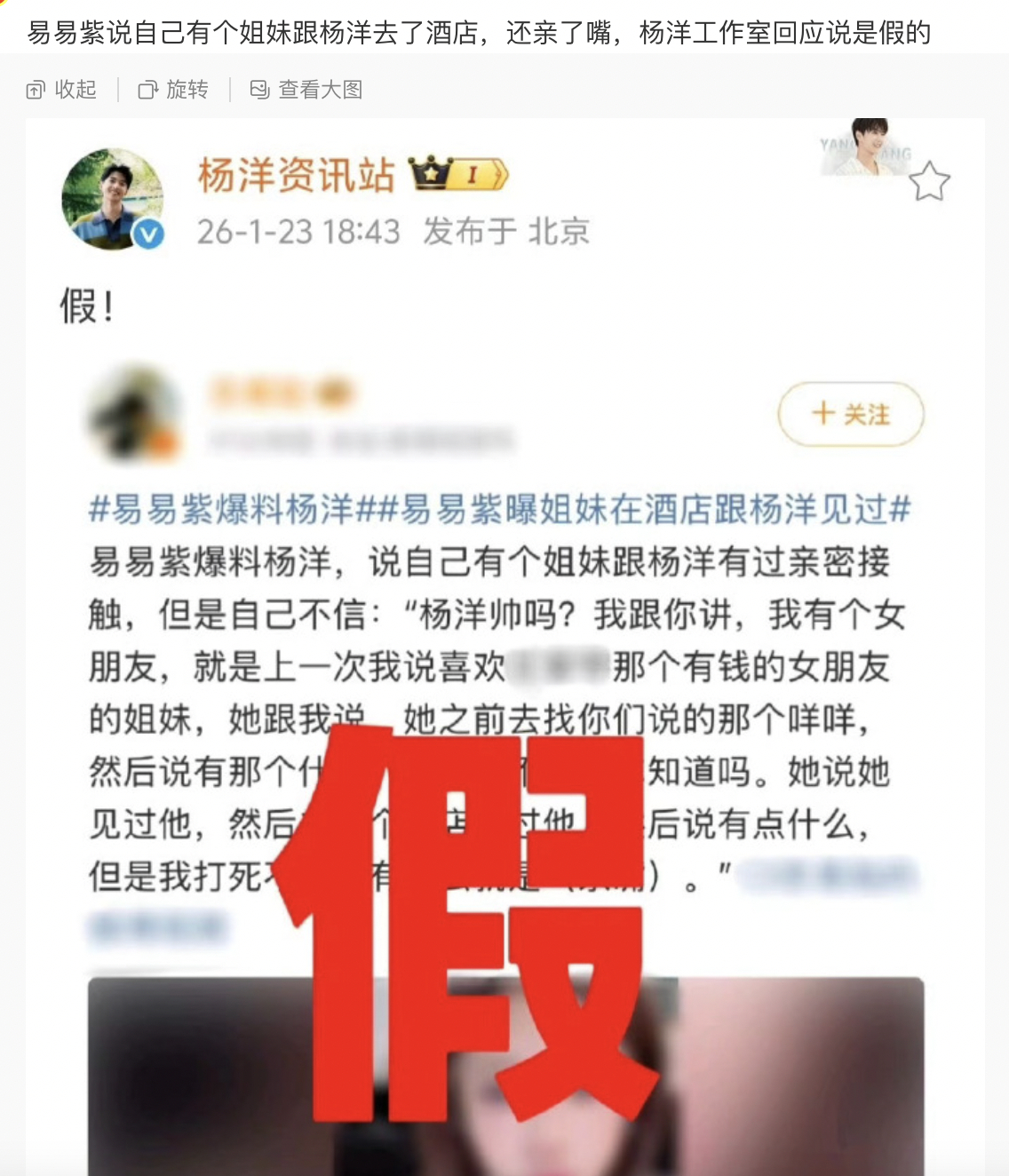 这种带杨洋大名的,建议直接告易易紫造谣刑事案件。易易紫爆料杨洋