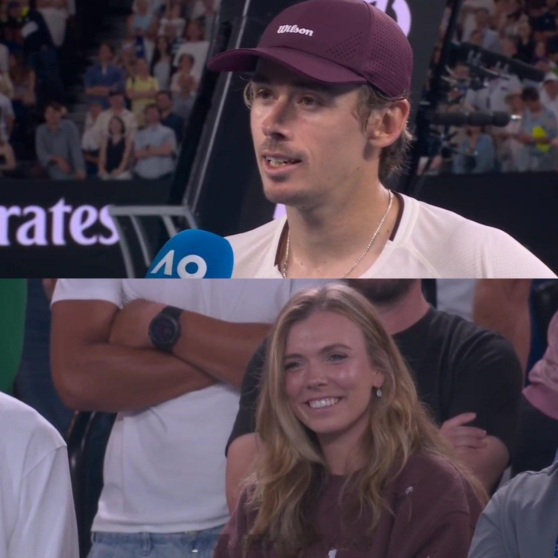 【撒狗粮时间】德米纳尔❤️:主持人:"我们都知道你多么渴望大赛胜利,但今年你已经锁定了一项重要胜利——你和未婚妻将于今年年内结婚。恭喜你和凯蒂!你打算参与多少婚礼筹备工作?还是会全部交给凯蒂处理?"亚历克斯:"吉姆,你是在质疑我吗?" 😂主持人:"我绝对在质疑你" 😭亚历克斯:"我们这是五五开的关系对吧?"主持人:"你还没结婚不懂。你即将成为一家超棒公司的49%股东。" 😂亚历克斯:"说实话,考虑到我们俩都是网球运动员,日程繁忙,我们正尽可能共同筹备。目前我已经参与了一些决策。不过等到涉及餐巾、鲜花装饰这些细节时——那可不是我的强项,我会交给凯蒂处理。" 这很澳网澳网2026澳网