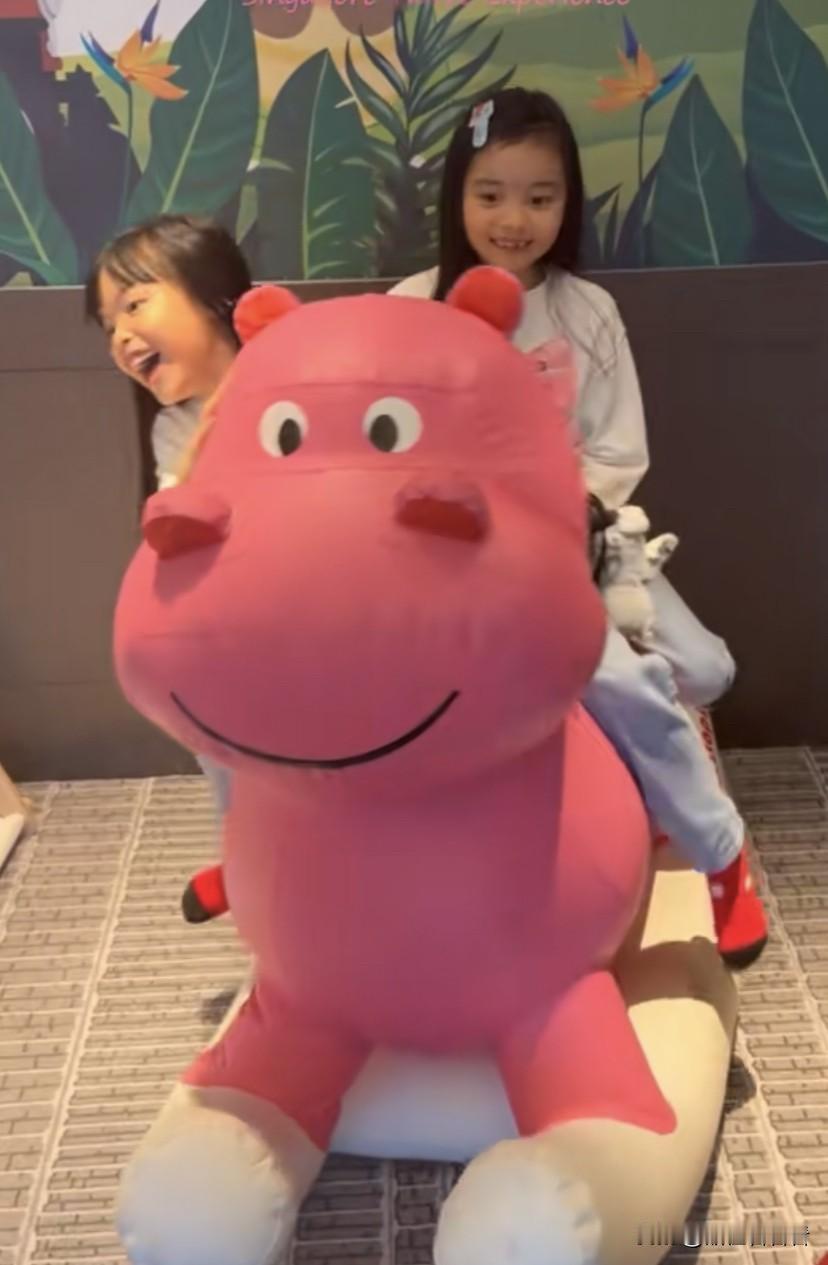 熊黛林和老公带双胞胎女儿出门游玩,去海洋馆,看恐龙吃烤肉。 两个女儿换牙期,一个女儿牙齿向外长,一个女儿牙齿向里长,一个内向一个外向,一个像妈妈一个像爸爸,一起出生的两个人,完全不同。 熊黛林老公很贴心,陪伴三位女生出门,全程配合妻子,还贴心的为全家人烤肉吃,自从熊黛林嫁给他后更生活化了,穿衣打扮都很随意,看起来也很舒服。