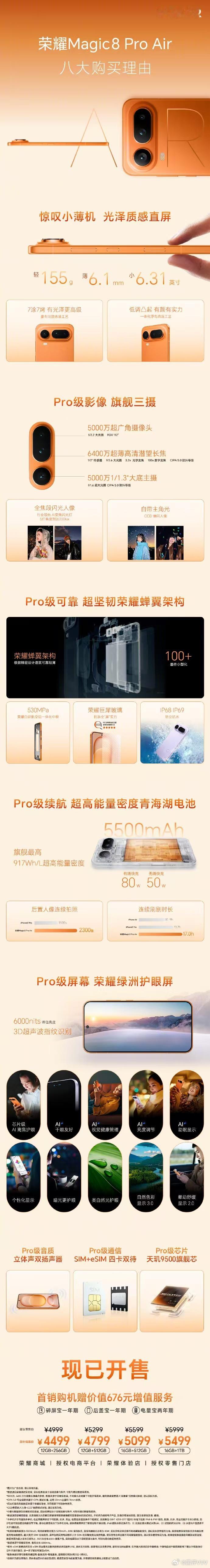 荣耀工程师称做Air不代表阉割配置155克机身竟藏着108处的毫米级精雕。荣耀Magic8 Pro Air这次把巅峰技术,写进了108个部件里。