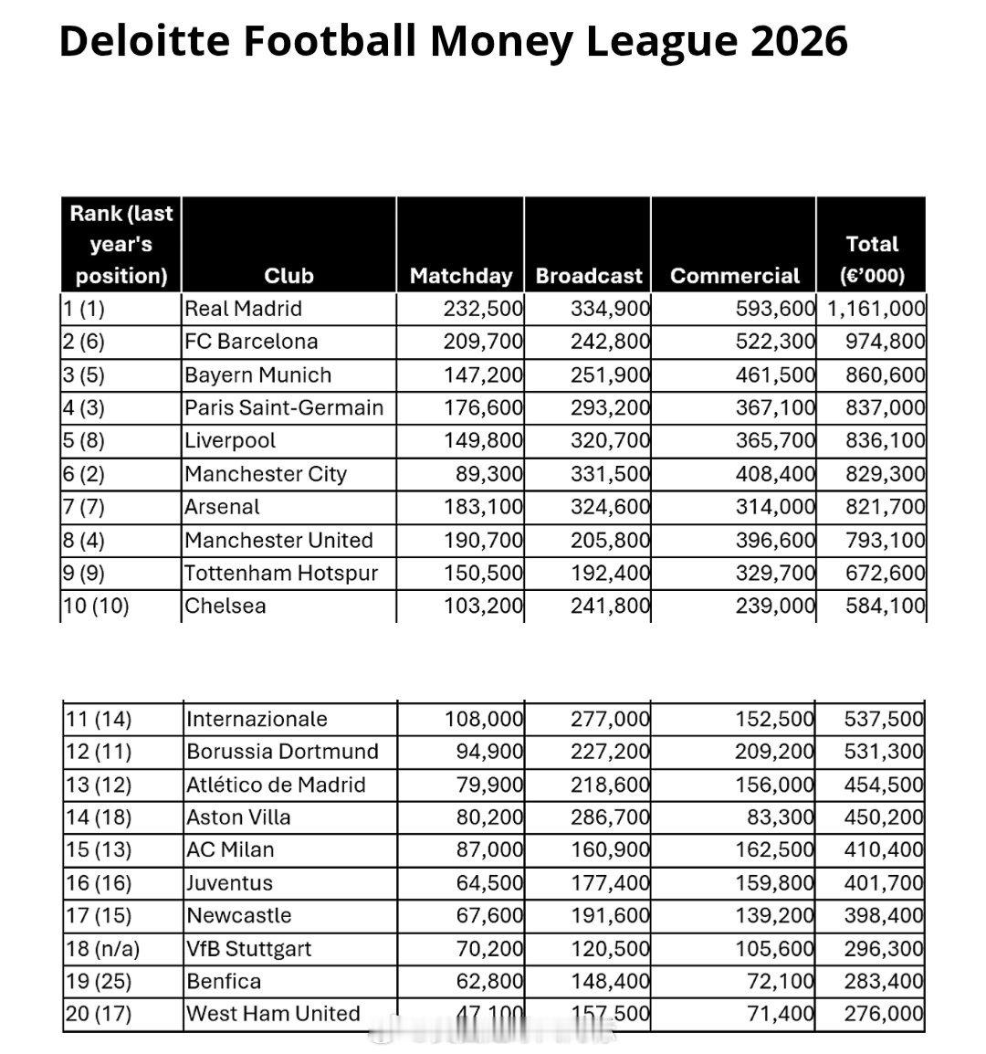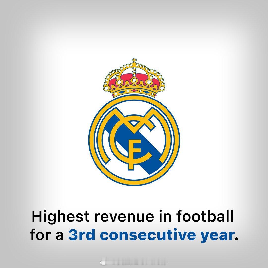 【皇马最赚钱】德勤发布行业报告,皇马连续三年成为全球最赚钱的足球俱乐部,2025年总收入达到11.61亿欧元。