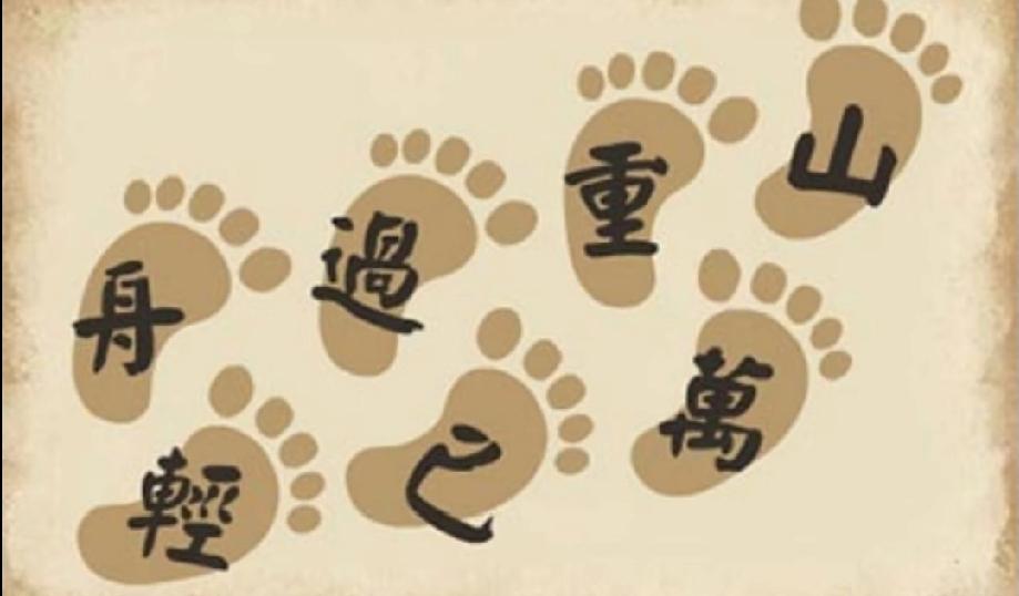 脚印里藏着“舟、輕、過、已、重、萬、山”,到底是什么成语?