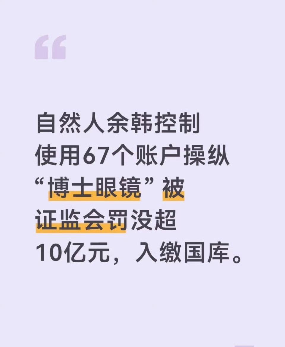 老余平时话不多,走在人堆里就是标准的路人甲,可一坐到电脑前,他就像进了无人区,键盘噼啪作响,屏幕上的红绿柱子随他心情跳舞。别人炒股靠消息,他炒股靠“账号”。五年里,他像集邮一样攒了67个证券账户,张三李四王五的名字排成队,全听他一个人指挥。早上九点半,哨子一响,这些账户齐刷刷地挂单,今天把“博士眼镜”托到天上,明天再把它踩回地面,节奏踩得比鼓点还准。日子久了,市场里流传一句话:博士眼镜这支票,涨跌得看老余点不点头。 为啥敢这么玩?老余的逻辑简单粗暴:钱多就是硬道理。他把资金集中到几个“拳头账户”,一口气扫货,成交量能占到全市场的四分之一,K线图上瞬间一根大阳线,散户一看“哇,利好来了”,纷纷跟进,他反手就把筹码倒给吃瓜群众,账户之间左手倒右手,股价像电梯一样上上下下,手续费刷得哗哗响,利润也水涨船高。五年下来,筹码倒腾了上百亿,兜里稳稳多出五个多亿,老余心里暗爽:这比开厂省心,比炒房刺激。 可纸里包不住火。监管的大数据不是吃素的,几十台服务器日夜跑模型,哪根K线异常、哪批账户联动,一目了然。工作人员像拼图一样,把67个账户的交易时间、IP地址、银行流水一点点对上,发现背后都是同一台电脑、同一只手机、同一个指纹。证据堆成山,老余还想辩解:我就玩了九个号,其他的都是亲戚朋友自己操作,股价涨是因为公司本身优秀。可铁证面前,这些说法像肥皂泡,一戳就破。更严重的是,这五年里大盘跌了一成多,博士眼镜却翻了近两倍,明显有人为拔高的痕迹,想赖都赖不掉。 罚单下来的那天,老余盯着屏幕上的数字,脑袋嗡的一声:违法所得五个多亿,全部没收,再罚一倍,合计十个亿出头,外加三年市场禁入。他算了算,这些年的盈利、房子、理财、甚至准备给孩子出国读书的钱,一下子全掏空。更难受的是名声,过去圈子里人称“余老师”,现在成了“余庄”,一提起来就摇头:就是那个被证监会开十亿罚单的。朋友聚会,他不好再谈股票,一开口别人就笑:“老余,你还有几个号没被封?”短短几天,头发白了一半。 监管早就放话:市场不是私家游乐场,账户再分散,也逃不过穿透式监管;利润再丰厚,也抵不过一纸罚单。老余的故事就像一面镜子,照出那些想靠“技术流”走捷径的人:你以为自己在割韭菜,其实镰刀早被盯住。账户多不等于力量大,资金厚不等于能任性,市场最公平的地方就在于,谁破坏规则,谁就得十倍奉还。十亿罚单不只是数字,更是给所有想动歪脑筋的人一个提醒:风筝飞得再高,线始终攥在法治手里,一拉就回地面。 来源:梨视频