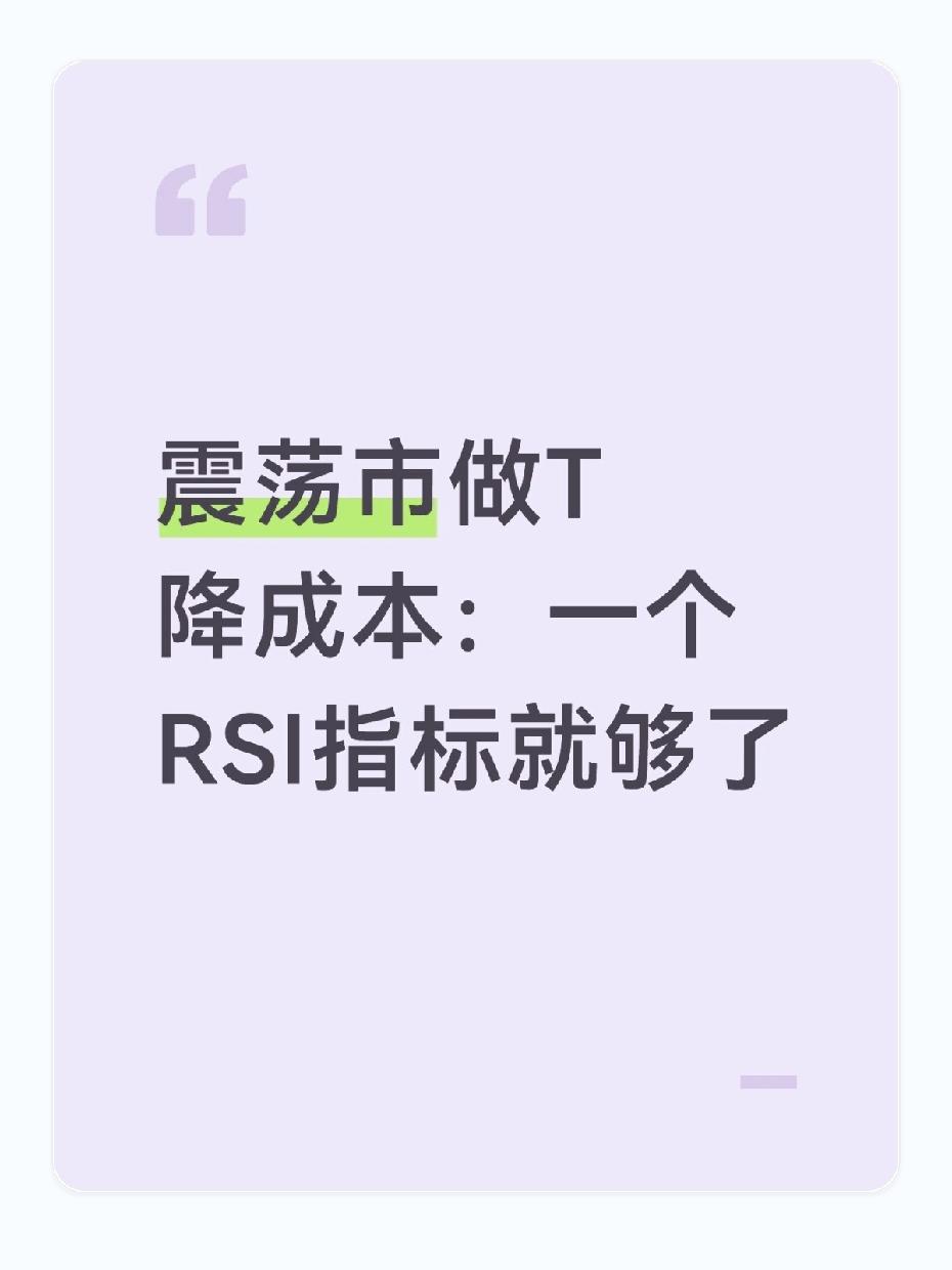手里的“螺母”(个股/ETF)一直横盘震荡,涨不动也跌不透,想降成本又怕越做越乱? 分享一个简单、可落地的日内做T方法,不用盯盘盯到眼花: ✅ 调出分时RSI,参数设为6 ✅ RSI>80 → 高抛(分时冲高、超买) ✅ RSI<20 → 低吸(分时急跌、超卖) ✅ 当天买卖次数相同,保持仓位不变 ✅ 大涨不追、大跌敢加,只做震荡区间内的差价 核心就一句话: 震荡市靠波动降本,单边市管住手。 每天只做1-2次,积少成多,成本会肉眼可见往下走。 打开软件调一下RSI(6),对照你手里的票验证一下,是不是比瞎操作靠谱多了?