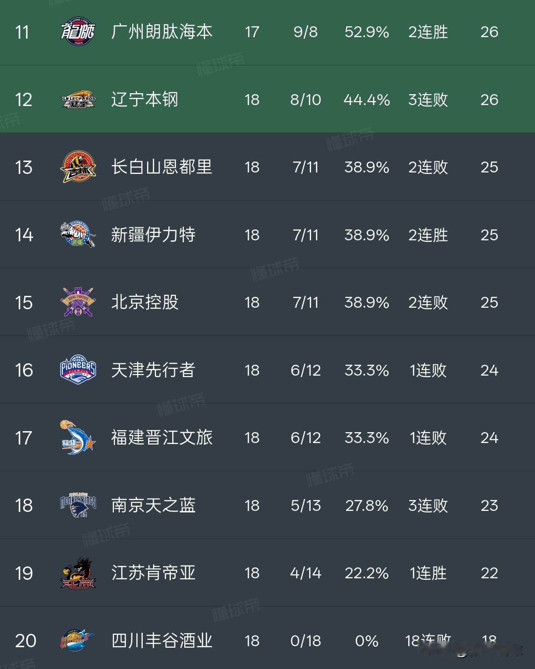 CBA最新积分榜丨辽宁队3连败排名降至第十二,下一轮客场对阵新疆是卡位之战,辽宁队很可能跌出季后赛。 辽宁队近6场比赛输掉5场,下一场对阵新疆的比赛很关键,辽宁如果不能取胜,两队胜场相同辽宁队很可能被反超。 辽宁队近6场比赛场均得分还没有到80,这是很难赢下比赛的,今天79:84输给山东的比赛,辽宁队几乎整场都在落后。