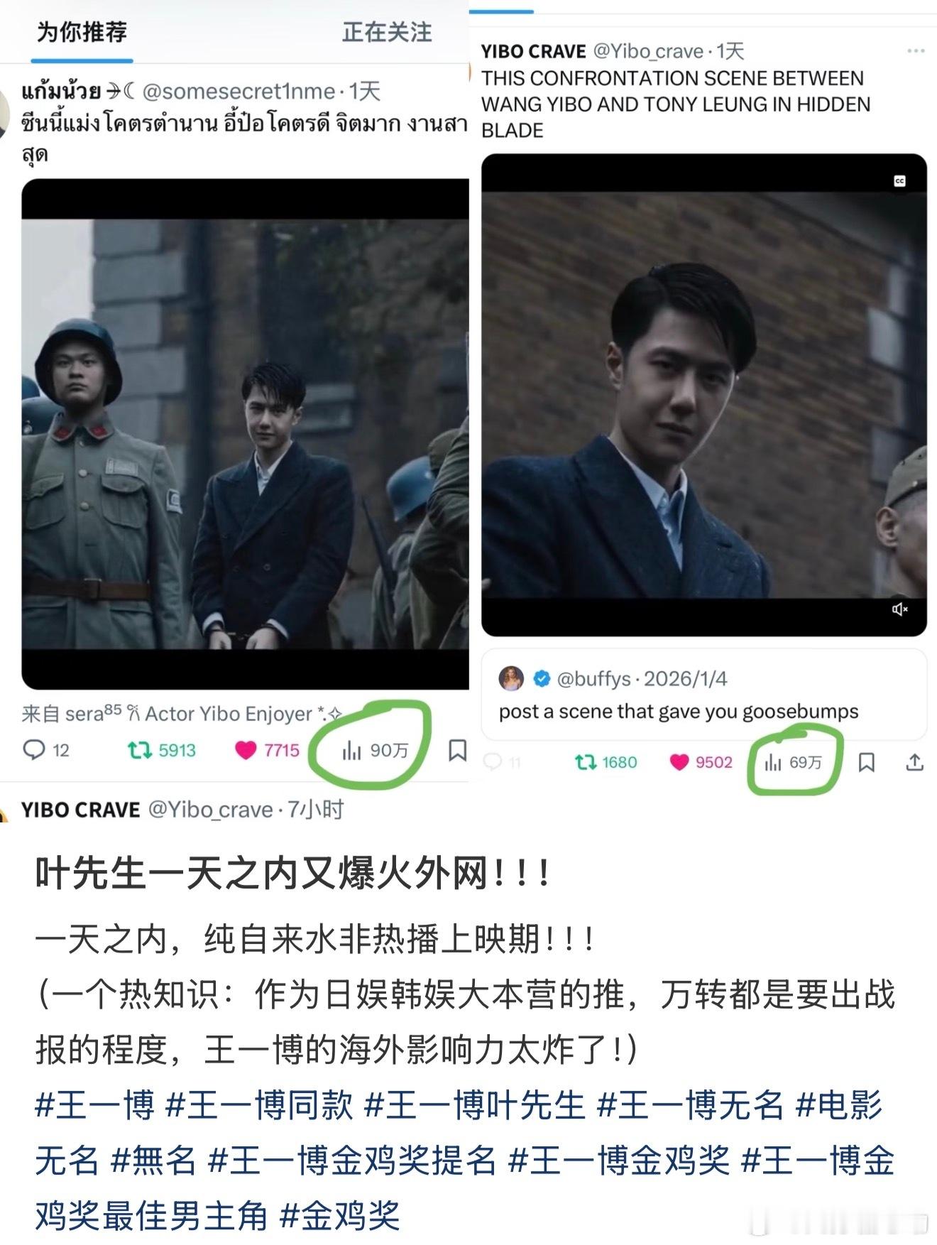 王一博在外网又火了.....是原帖发了一个“让你起鸡皮疙瘩的场景”的帖子,海外摩托发了叶先生这个片段,最新浏览量已破百万(图七)