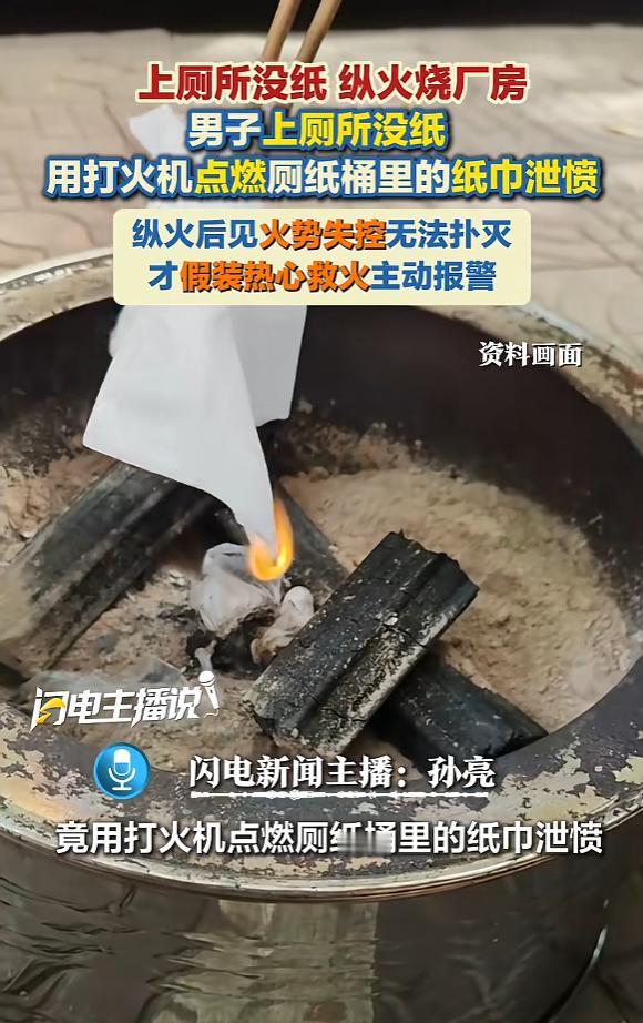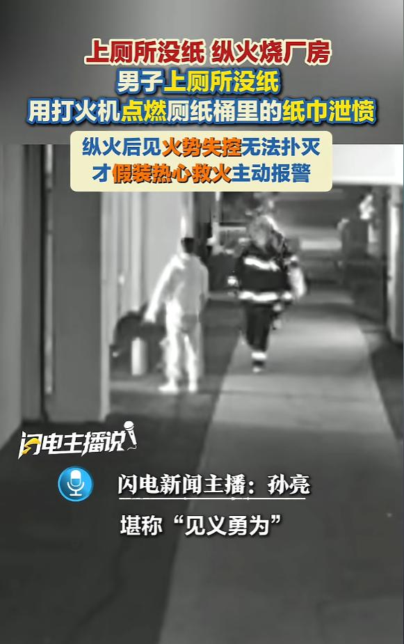 “丢人丢大了!”1月17日,浙江绍兴,一男子酒后内急,上厕所时发现没纸,一时怒火中烧,竟用打火机点燃垃圾桶里面的纸巾泄愤,见火势蔓延,男子才慌忙报警并假装热心救火,想要洗脱嫌疑,却被监控拍得一清二楚。网友:所以擦屁股了吗? 事情发生在1月17日凌晨,绍兴越城区1051文创园里,一间空置的厂房突然冒出了浓烟,看着势头还不小,路过的人赶紧留意着情况。 没过多久,消防和民警就赶到了现场,好在处置及时,火势很快就被控制住了,也没造成人员伤亡,算是不幸中的万幸,最大限度减少了财产损失。 本来大家都以为,这就是一场意外失火,可警方调查的时候,却发现了不对劲的地方。 据了解,火灾刚发生没多久,就有一个男子主动拨打了119报警,把火情位置说得清清楚楚,还给救援争取了不少时间。 民警一开始还想找到这个“热心市民”,问问事发时的细节,可调取了周边的监控后,所有人都警觉起来。 监控画面里看得明明白白,起火前,这个男子趁着酒劲,偷偷溜进了那间空置厂房,在里面停留了一会儿就匆匆离开了。 就在他走后几秒,厂房里就冒出了明火,这也太巧合了。 更让人意外的是,火灾发生后,这个男子又出现在了现场附近,一边焦急地张望,一边打电话报警,还从厂房里找出了灭火器,对着起火的地方奋力喷射,那模样看着比谁都着急,不知情的人还真以为他是见义勇为的热心人。 可这“热心肠”的样子,非但没洗清他的嫌疑,反而让民警把目光牢牢锁定在了他身上。 很快,民警就找到了这名嫌疑人钱某某,将他抓捕归案。 面对审讯,钱某某也没扛多久,就如实交代了自己纵火的全部经过,而他纵火的理由,说出来真的让人跌破眼镜。 原来事发当晚钱某某喝了不少酒,路过文创园的时候突然内急,找不到公共厕所,就溜进了这间空置厂房的厕所。 可等他解决完生理需求,才发现厕所里居然没有卫生纸。 本来就带着酒劲,再加上最近个人经济压力大,一肚子烦心事没处发泄,钱某某瞬间就情绪失控了。 怒火中烧的他,掏出随身携带的打火机,一把点燃了厕纸桶里的纸巾,发泄完火气,还随手把燃烧的纸团扔到了厕所外的地面上。 他大概也没多想,这间空置厂房里堆了不少木材制品和家具配件,全是一点就着的易燃物,那燃烧的纸团一落地,火势立马就窜了起来,转眼就蔓延开了。 看着越来越大的火势,钱某某这才彻底慌了神,他知道自己闯大祸了,赶紧拨打了报警电话,还故意装出一副热心救火的样子,想骗大家说是别人放的火,把自己摘干净。 说白了,这就是一时糊涂加侥幸心理作祟,酒后情绪没控制住,以为装装热心人就能蒙混过关,殊不知监控早就把他的一举一动都记录下来了,想狡辩都没机会。 有人说他太冲动,不就是没纸吗,多等一会儿或者找别人借一下,怎么也不至于放火;也有人说,酒后失德更失智,再大的压力和火气,也不能拿放火这种危险的事发泄。 虽然钱某某事后主动报警、奋力救火,一定程度上延缓了火势蔓延,但他故意点火、放任危险发生的行为,已经涉嫌放火罪,还是要依法被追究刑事责任,等待他的,终将是法律的审判。 这事也给大家提了个醒,遇事一定要冷静,别被一时的情绪冲昏头脑,尤其是喝酒之后,更要控制好自己的言行,不然一时的冲动,可能就要付出一辈子的代价。 对此您有什么不同的看法,可以在评论区留言讨论!!! 信息来源:《男子上厕所没纸,用打火机点燃厕纸桶里的纸巾泄愤,纵火后见火势失控无法扑灭,才假装热心救火主动报警。》闪电新闻