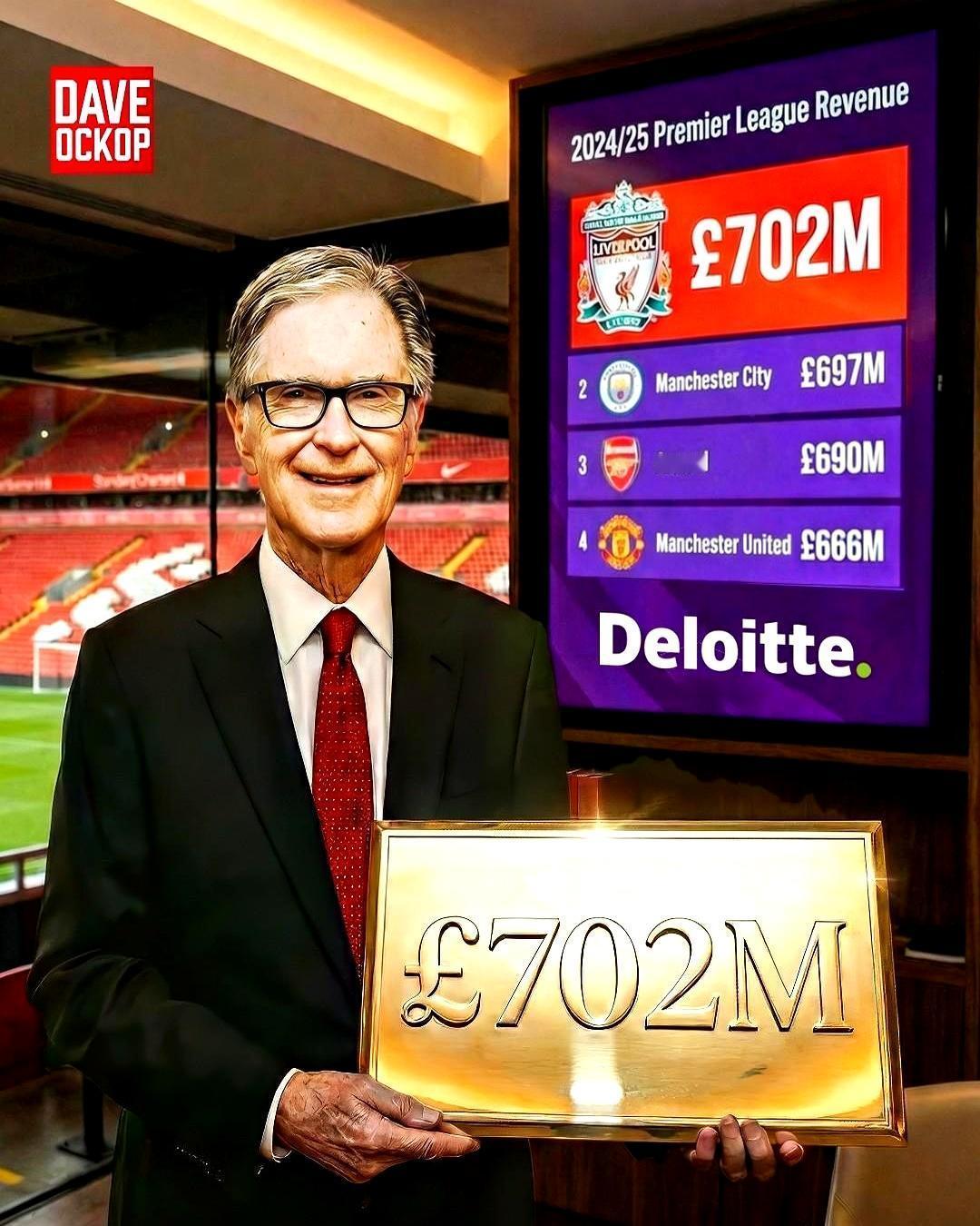 英超一夜变天!利物浦首次登顶,曼城曼联被远远甩在身后。 你没看错,根据德勤最新报告,利物浦24/25赛季狂揽8.36亿欧元(约70亿人民币),历史上第一次,成了英格兰最能挣钱的俱乐部。 钱从哪来的?就靠两件事。第一,重返欧冠,转播费直接暴涨34%,一座英超冠军奖杯,带回来的全是真金白银。 第二件更绝。安菲尔德球场不踢球的时候,竟然请来泰勒·斯威夫特开演唱会,光是场租和周边,就赚得盆满钵满,这招简直是点石成金。 都说这是新帅斯洛特的功劳,可懂球的都明白,他这是在“吃”渣叔克洛普留下的老本。克洛普打下的竞技基础和全球影响力,现在才开始真正变现。 所以,你现在该懂了,为什么芬威老板有底气砸钱买人了?兜里有粮,心里不慌,今年的转会市场,有好戏看了。 渣叔种树后人乘凉,足球这江湖,功劳簿上从来不只写一个人的名字。