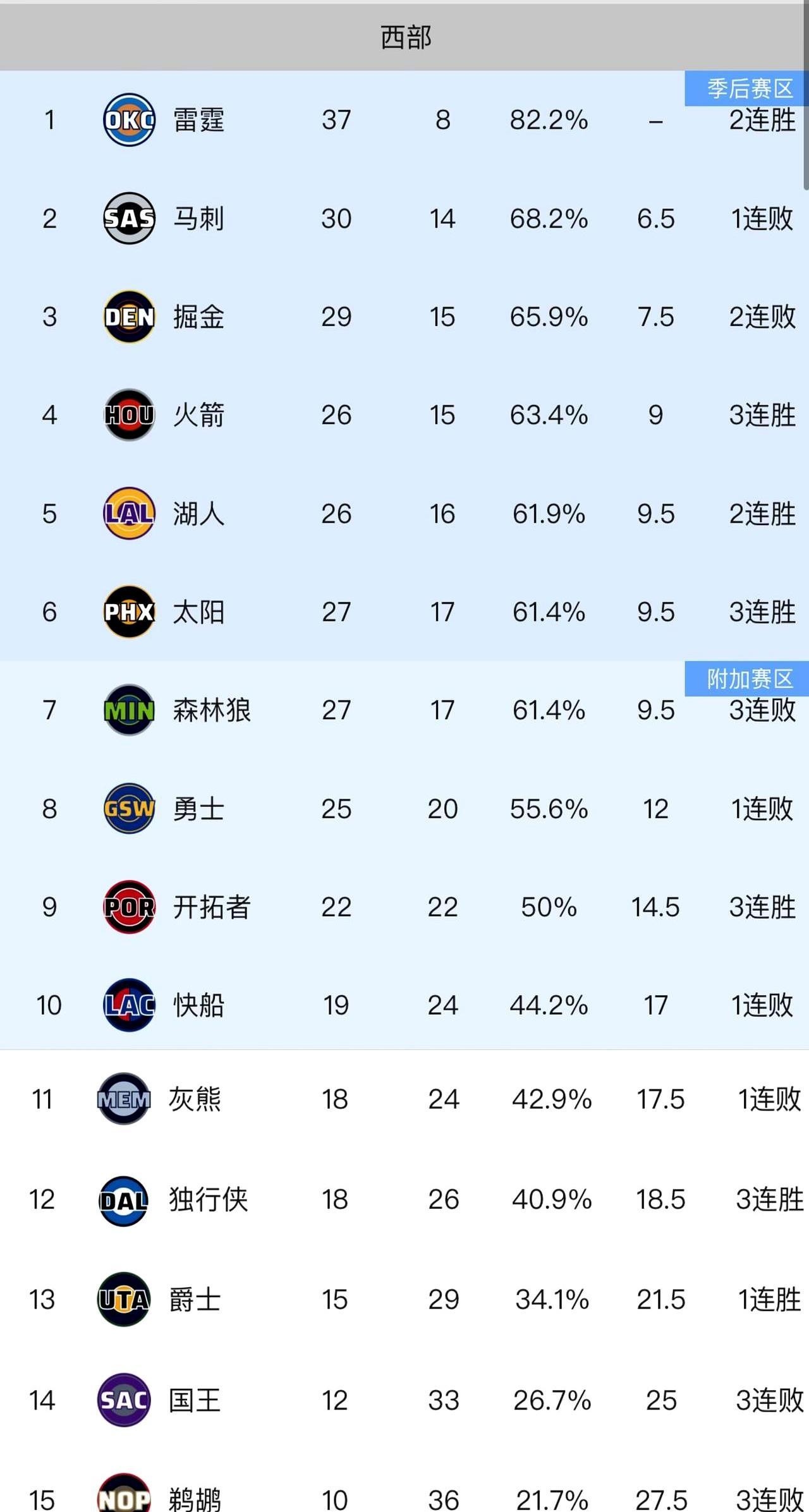 雷霆把雄鹿打成晨练,SGA 40分跟玩似的,37胜8负,联盟第一坐得稳稳的。 雄鹿呢?字母哥再猛也顶不住全队梦游,18胜25负,东部第11,再滑就掉沟里了。 灰熊主场122比124被老鹰掐喉,差一口气进附加赛,18胜24负,继续吊在悬崖边。 鹈鹕更惨,客场输活塞,人家还让了个坎宁安,自己10胜36负,全联盟垫底,烂得没眼看。 西部头尾一眼看穿:雷霆天上飞,鹈鹕泥里爬。 快船19胜24负,第十的位置像纸糊,今晚打湖人,输了就被灰熊踹下去。 一句话:强的更强,烂的继续摆,中间这群人,每天醒来都是季后赛抢凳子。
