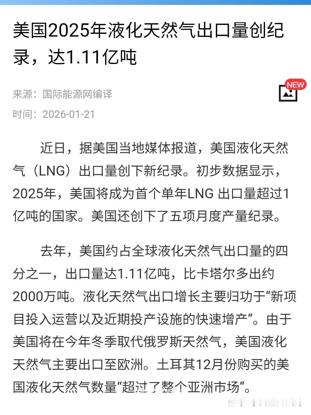 中国延长暂停从美国进口液化天然气。背后的决定性因素是什么? 根据Kpler的数据,自2月初以来,中国尚未从美国进口任何液化天然气。 最后一批从海湾地区启程前往中国的液化天然气货轮于2月6日出发,数据还显示。 分析师警告称,中国对美国商品(包括能源产品)征收的关税,以及世界两大经济体之间的贸易战,可能对新美国液化天然气出口项目吸引锚定采购承诺的能力产生长期影响。 美国从未是中国LNG的主要供应商,但自北京对美国能源进口实施报复性关税后,供应完全中断。 彭博社3月援引交易界消息人士报道称,在关税战后,与中国有长期供货合同的美国LNG买家开始将货源转售给欧洲。此外,中国贸易商对从美国获得未来供应的新长期承诺态度转冷,转而寻求与中东和亚太地区天然气生产商签订长期协议。 最新消息是,阿联酋阿布扎比国家石油公司与一家中国公司签署了一份为期15年的液化天然气供应协议,年供应量为100万吨。 这使该合同成为中国企业最大的液化天然气供应协议。中国能源公司ENN表示,该协议将提升能源供应安全并多元化其供应来源。 中国液化天然气进口前景总体偏空,彭博新能源财经上月预测,高水平的天然气库存将压低全年需求,导致液化天然气进口量自2022年以来首次年度下降。 关税措施现在也以另一种方式影响了美国液化天然气行业。 特朗普总统对停靠美国港口的中国建造船舶征收关税,旨在促使美国能源公司使用美国建造的船舶,而目前尚无此类船舶。 ------------------------------------ 是那种一路制裁到美国液化天然气出口新高吗?