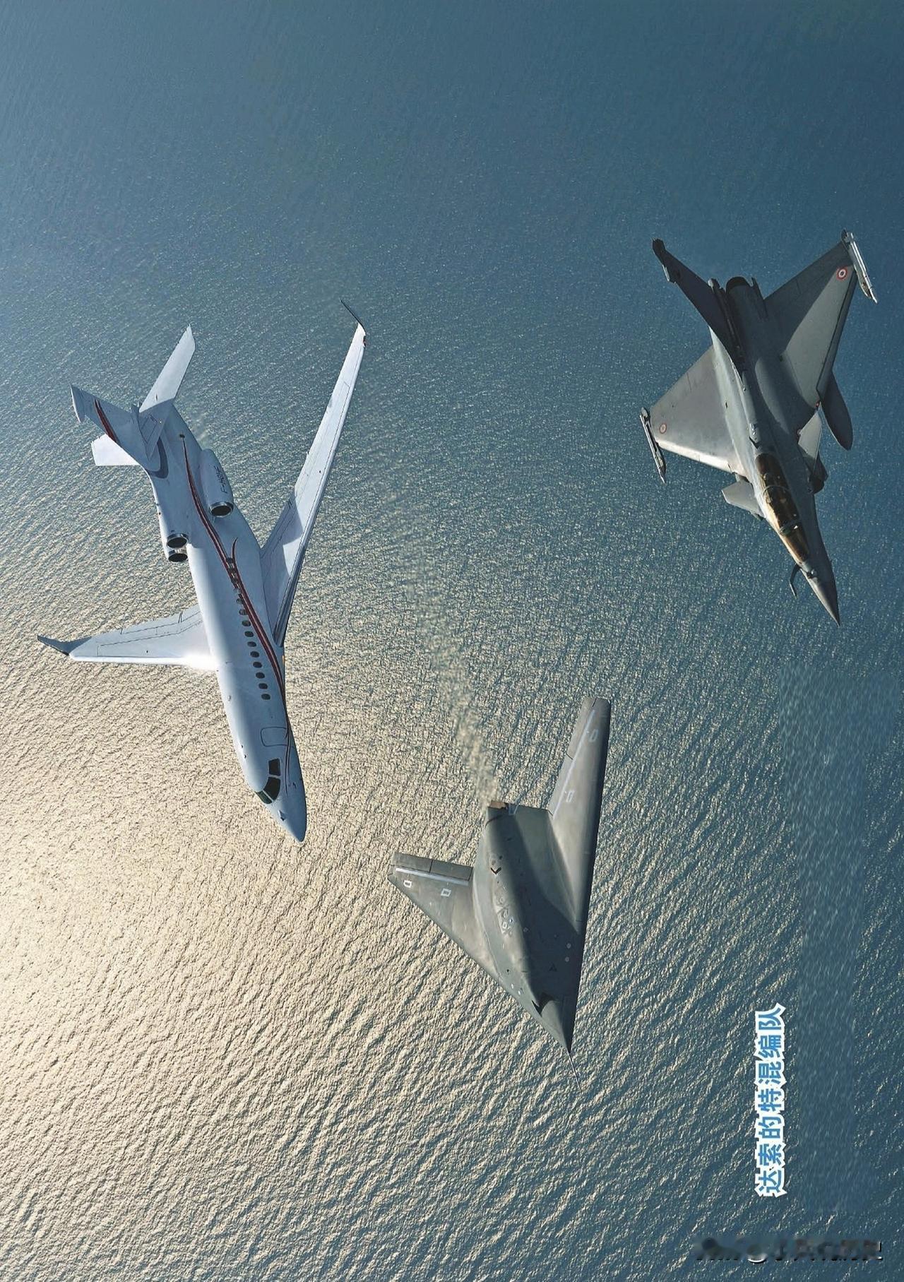 达索的特混编队 2014年3月20日达索飞机公司的神经元无人作战飞机,“阵风”战斗机和“猎鹰7X公务机组成了一支独特的编队。 这是无人作战飞机首次尝试与其他飞机编队飞行。这次试验在地中海上空完成,持续时间T小时50分,飞行距离700千米。