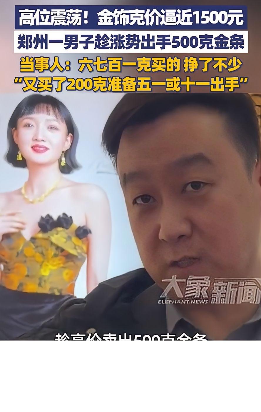 河南郑州,一男子见近期金饰克价逼近1500元,觉得差不多了,果断卖掉500克金条,而这些金条是600多一克时购买的,这一买一卖就让他血赚了,有意思的是,买完后他又买了200克,准备过段时间再卖掉。 有网友表示:荆先生的这种玩法,打破了普通人对待黄金的极端认知。很多人要么将其视为高深莫测的投资避风港而不敢触碰,要么仅将其当作买首饰的跟风消费,一旦市场波动便容易患得患失。相比之下,荆先生的做法显得格外“接地气”。 荆先生这一波操作,给咱们上了一堂生动的实战课。别总想着卖在最高点,那是神仙干的事,咱们凡人只要能吃到鱼身子,就足够笑傲江湖了。 这轮黄金大涨,背后是全球避险情绪、投资需求旺盛等多种复杂因素共同推动的结果,谁也无法精准预测顶点和谷底。 投资这事儿,从来就没有绝对的输赢,只有适合不适合,像荆先生这样,达到心理价位就部分兑现,留有余地继续观望,不把鸡蛋放在一个篮子里,才能在风浪中站得稳,咱们普通人别总想着一夜暴富,细水长流、知足常乐,或许才是过日子最好的法子。 对此大家怎么看呢