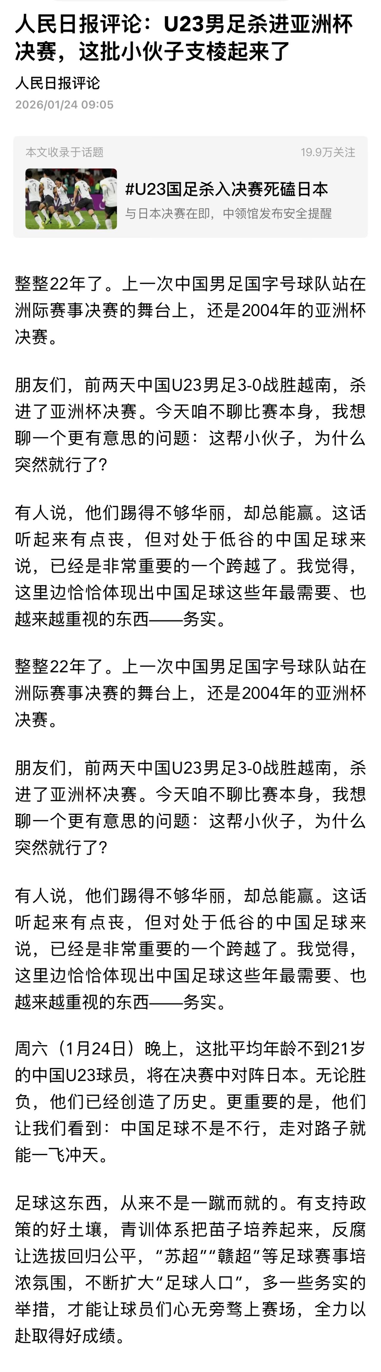 22年前,2004年亚洲杯决赛,中国队以1:3负于日本队。 22年后,2026