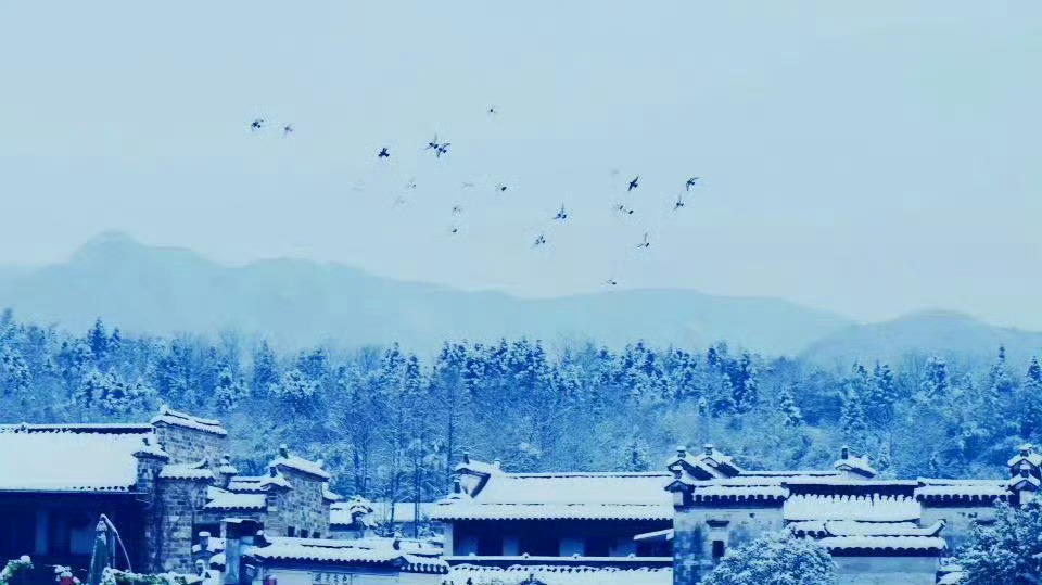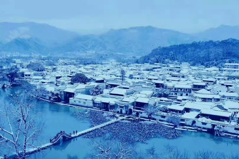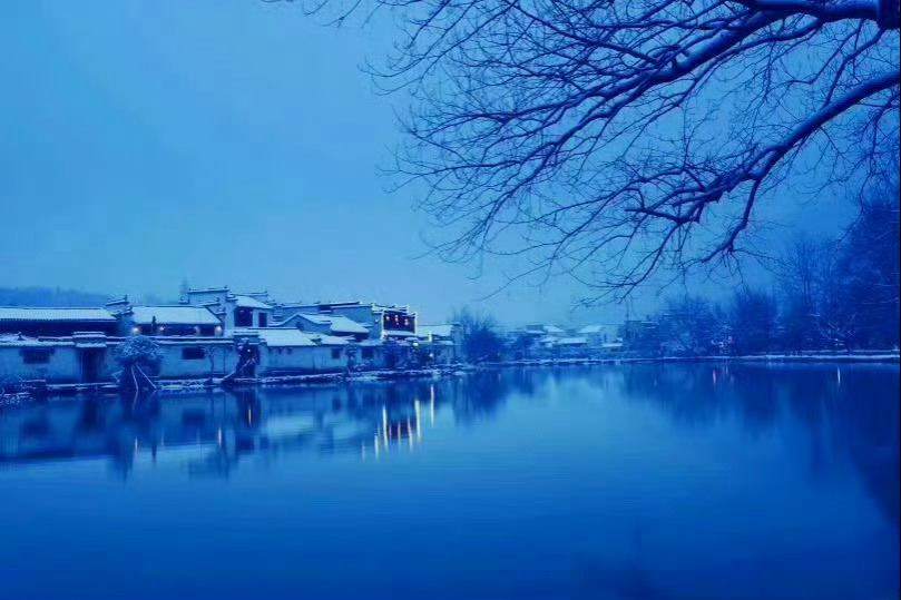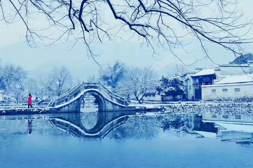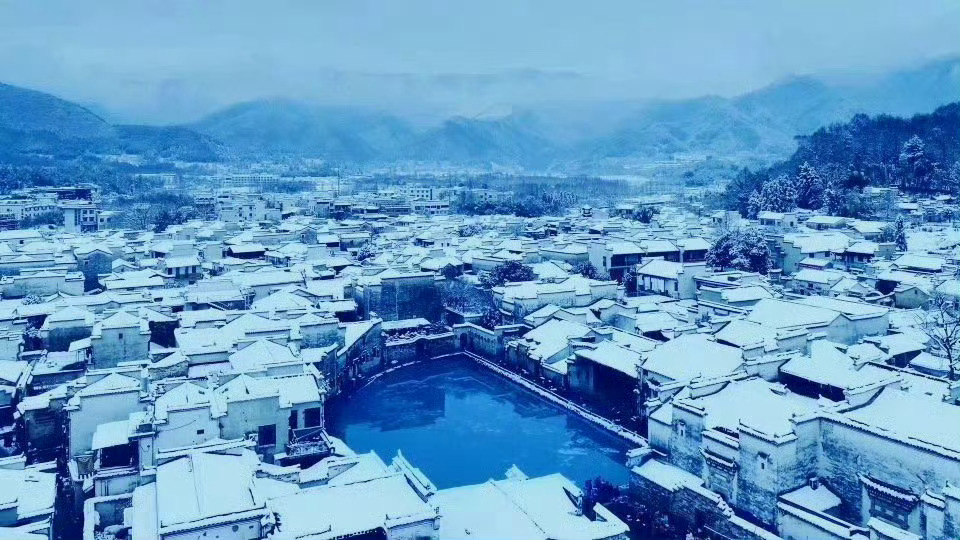 冬日徽州一场雪,如诗如画醉宏村。